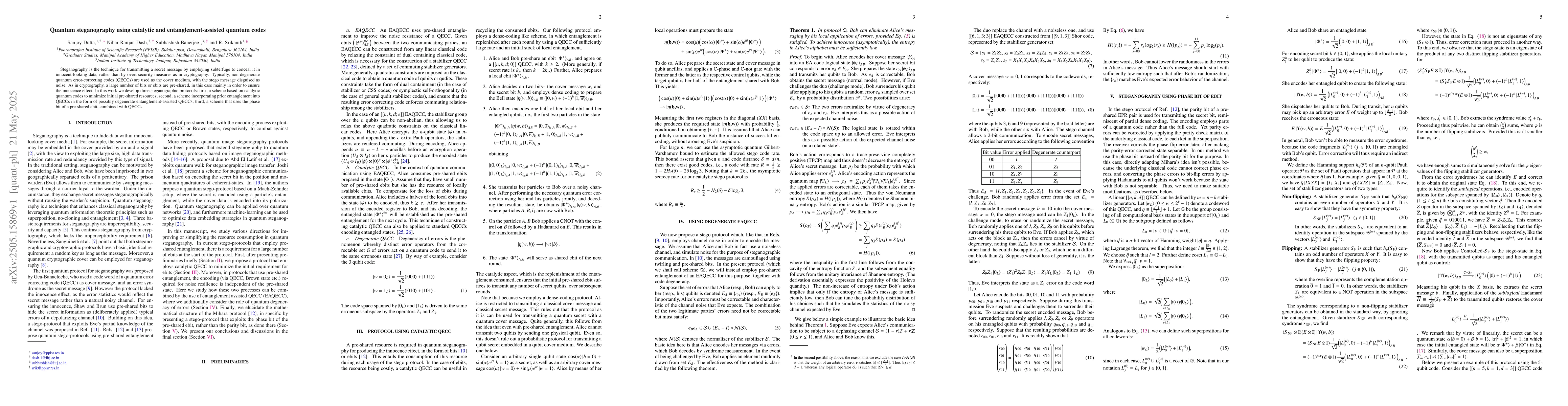 Researchers developed three quantum steganography protocols using catalytic codes, entanglement-assisted codes, and phase bits to hide secret messages in innocuous data.