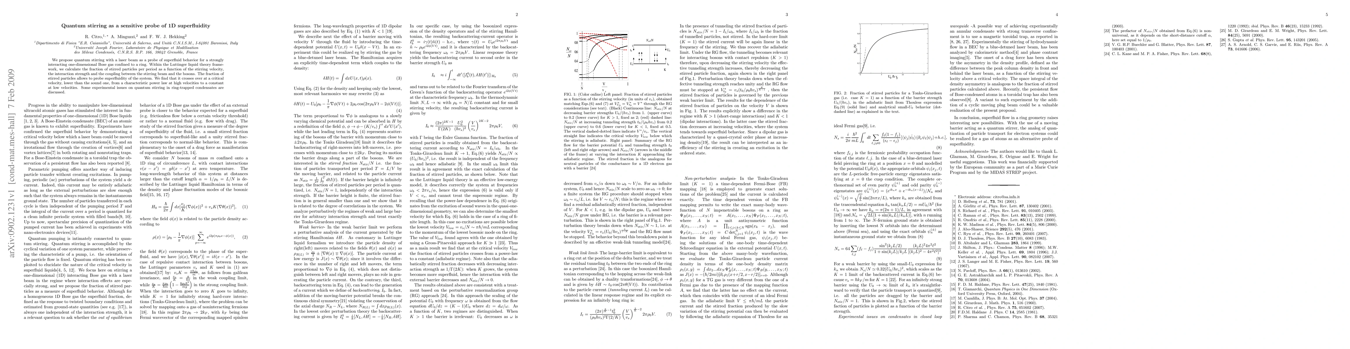 We propose quantum stirring with a laser beam as a probe of superfluid behavior for a strongly interacting one-dimensional Bose gas confined to a ring. Within the Luttinger liquid theory framework, we calculate the fraction of stirred particles per period as a function of the stirring velocity, the interaction strength and the coupling between the stirring beam and the bosons. The fraction of stirred particles allows to probe superfluidity of the system. We find that it crosses over at a critical velocity, lower than the sound one, from a characteristic power law at high velocities to a constant at low velocities. Some experimental issues on quantum stirring in ring-trapped condensates are discussed.