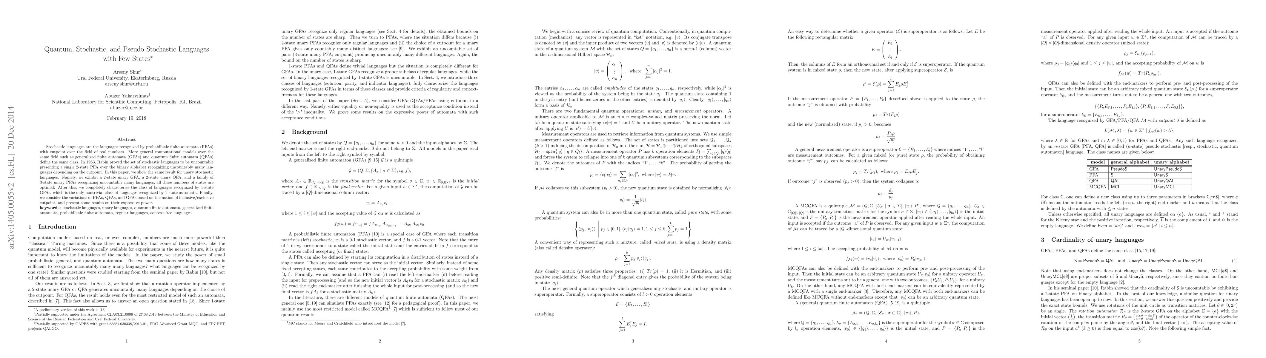 Researchers show that languages recognized by 1-state generalized finite automata (GFA) and 2-state quantum finite automaton (QFA) are uncountably many, with optimal number of states, matching a 1963 result on probabilistic finite automata.