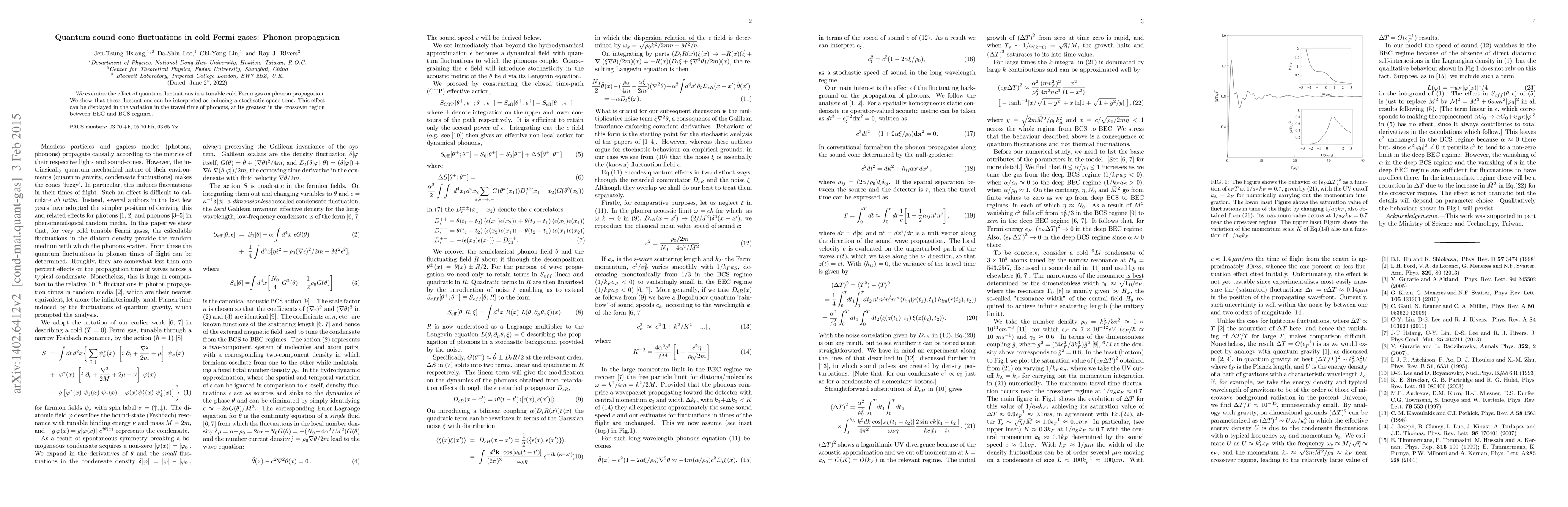 Researchers studied how quantum fluctuations in a cold Fermi gas affect phonon propagation, finding that these fluctuations create a stochastic space-time with significant effects on the transition between Bose-Einstein Condensate and BCS regimes.