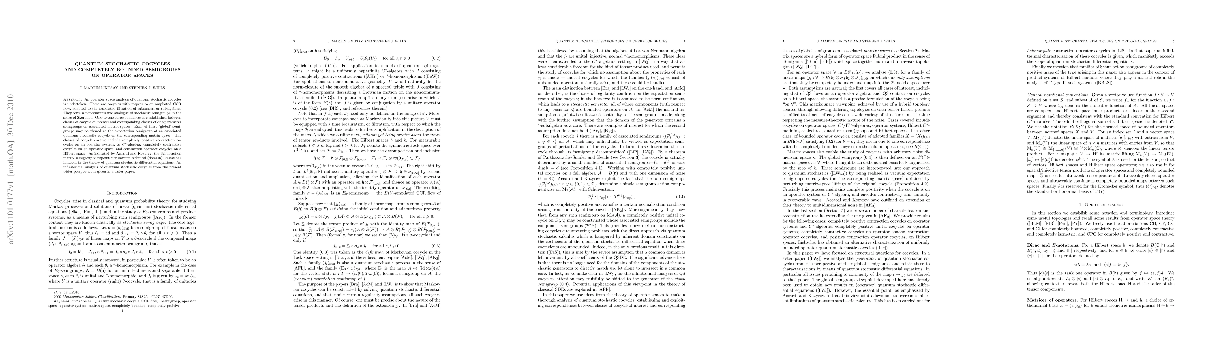 This paper explores operator space analysis of quantum stochastic cocycles, establishing correspondences between these cocycles and completely bounded semigroups on matrix spaces. It addresses limitations in quantum stochastic differential equations by employing the Schur-action matrix semigroup approach.