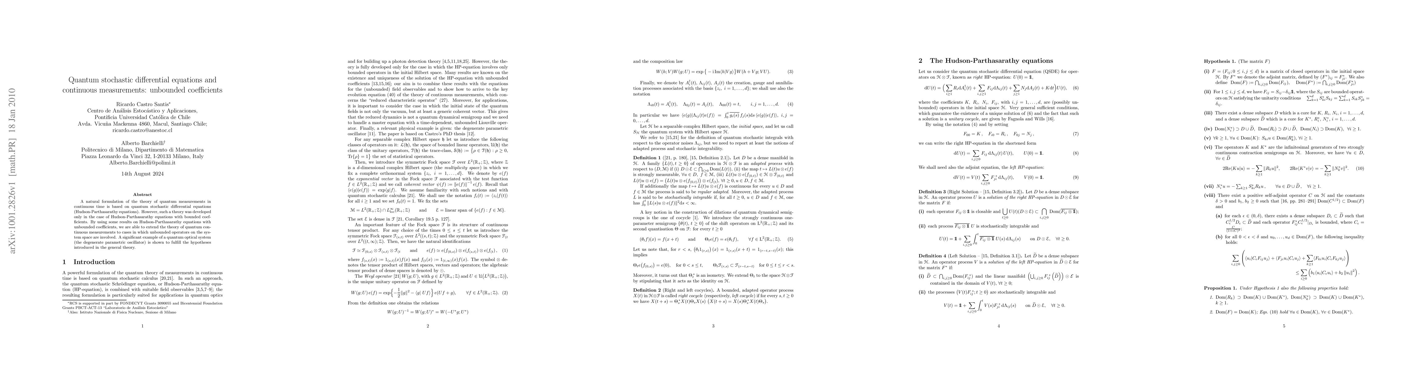 This paper extends the theory of quantum continuous measurements to systems with unbounded coefficients using Hudson-Parthasarathy equations, demonstrating its applicability to quantum optical systems like the degenerate parametric oscillator.