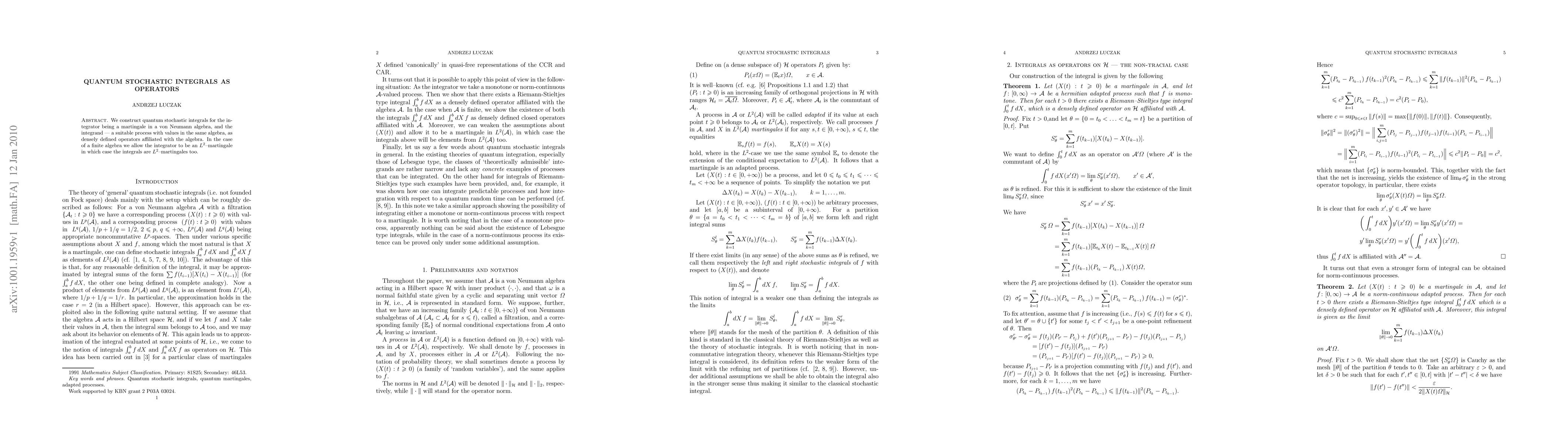 This paper constructs quantum stochastic integrals where the integrator is a martingale within a von Neumann algebra, and the integrand is a compatible process, represented as densely defined operators. For finite algebras, it allows $L^2$-martingales as integrators, resulting in $L^2$-martingales as integrals.