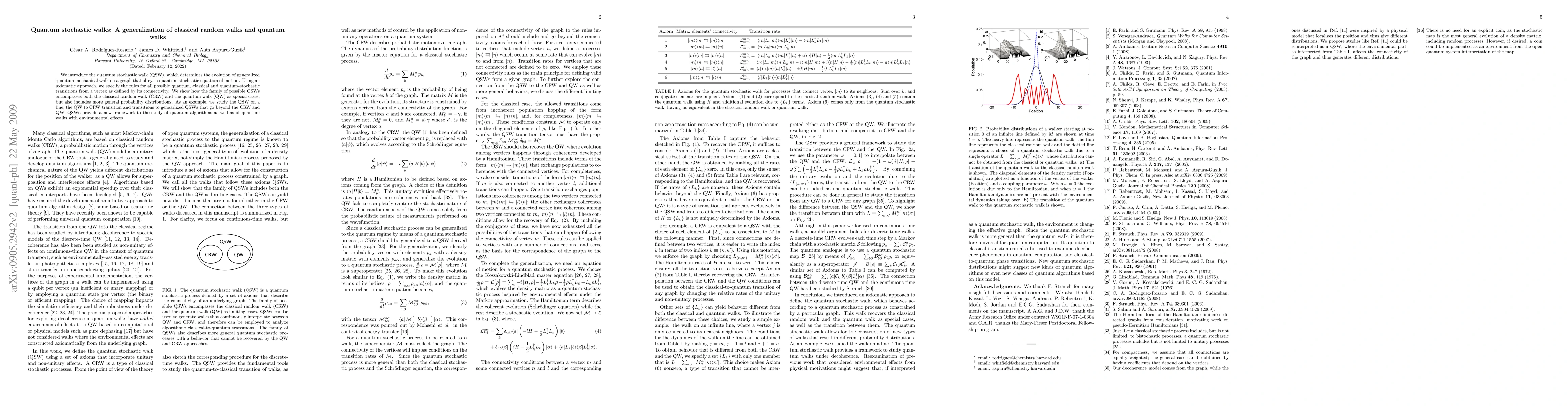 This paper introduces quantum stochastic walks (QSWs), a framework that generalizes classical random walks and quantum walks. It specifies the rules for quantum, classical, and quantum-stochastic transitions, demonstrating how QSWs encompass both classical and quantum walks while allowing for more general probability distributions.