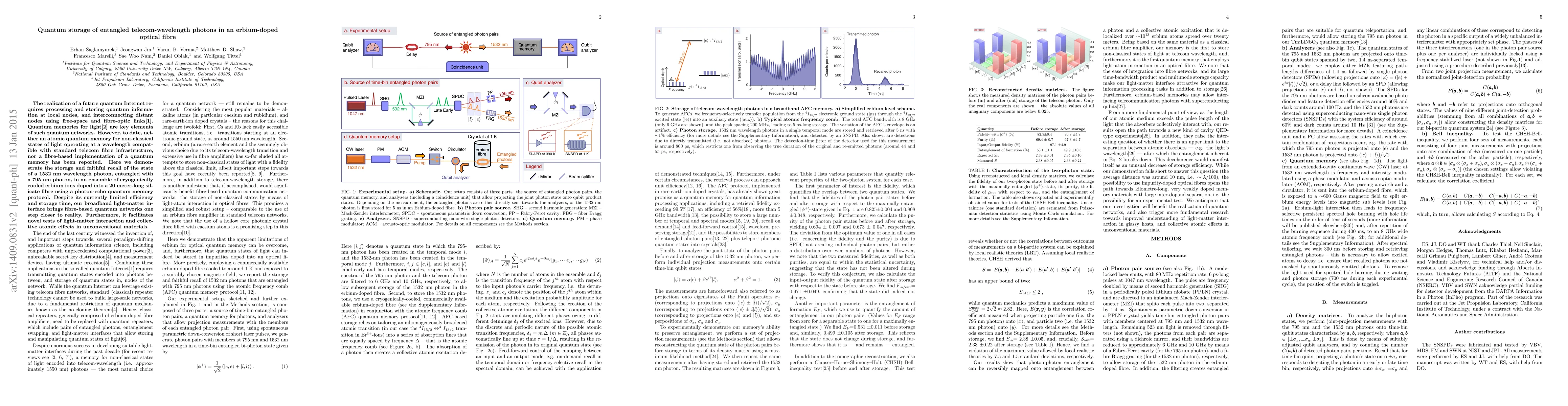 This paper demonstrates the first quantum memory for storing entangled telecom-wavelength photons in a cryogenically cooled erbium-doped optical fibre, marking a significant step towards realizing a quantum Internet. Despite current limitations in efficiency and storage time, this broadband light-matter interface advances fibre-based quantum networks and enables novel tests of light-matter interactions.