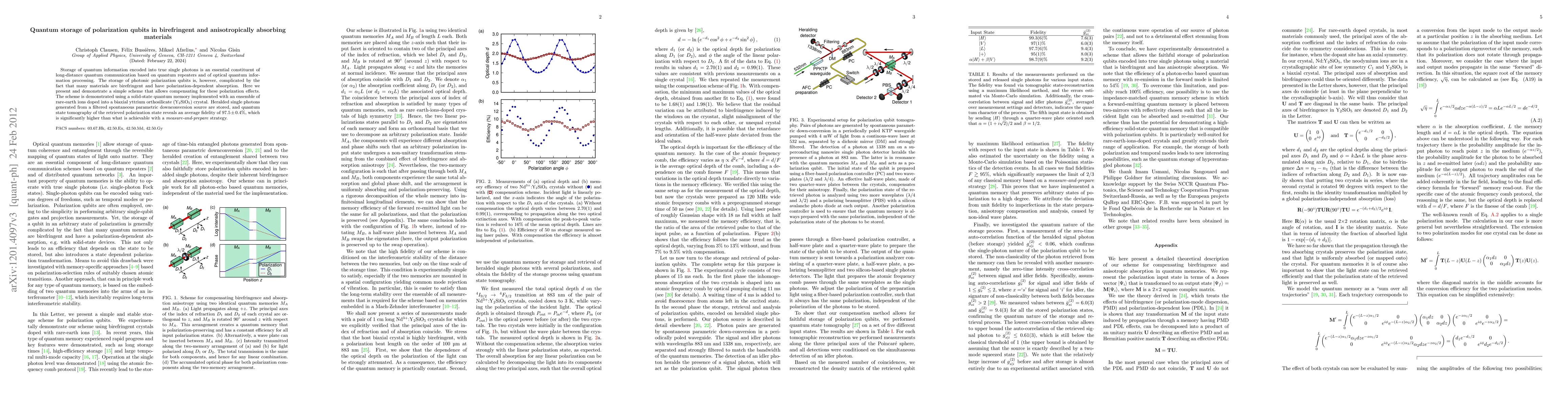 This paper proposes a method to store quantum information in birefringent and anisotropically absorbing materials by compensating for polarization effects. Demonstrated using rare-earth ions in a $Y_2SiO_5$ crystal, the scheme achieves a high fidelity of 97.5% for stored photonic polarization qubits, surpassing conventional strategies.