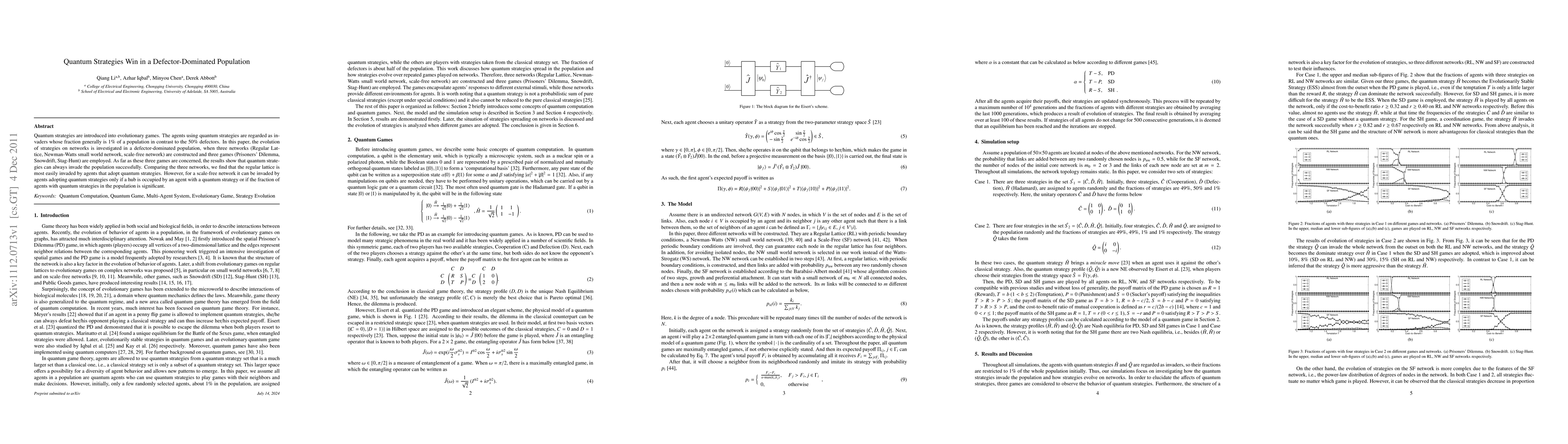 Quantum strategies can successfully invade a defector-dominated population in various network structures, with regular lattices being the most easily invaded, while scale-free networks require specific conditions for invasion to occur.