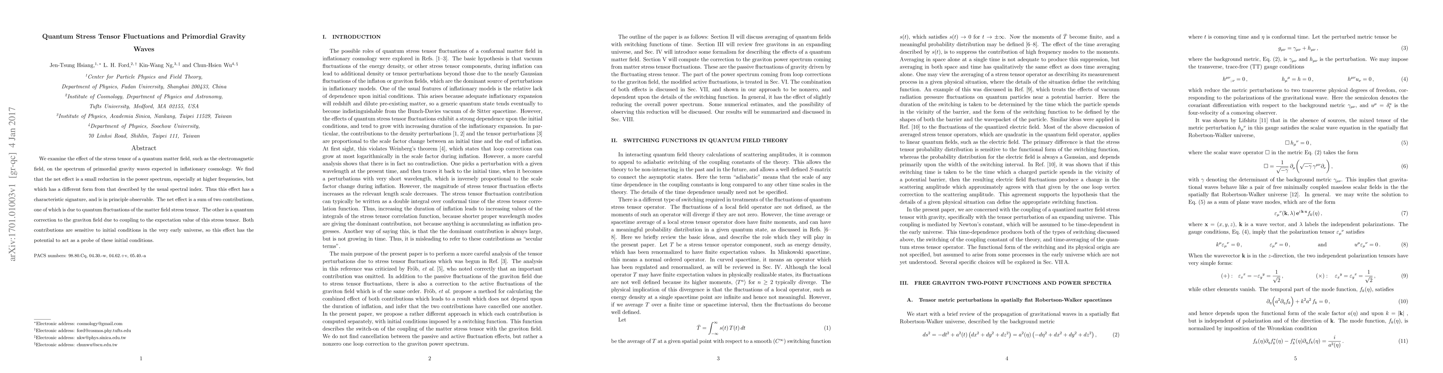 This paper investigates the influence of quantum stress tensor fluctuations in a matter field on the spectrum of primordial gravity waves during inflation, revealing a unique signature in the power spectrum. The effect, comprising contributions from quantum fluctuations and corrections to the graviton field, may serve as a probe of early universe conditions.