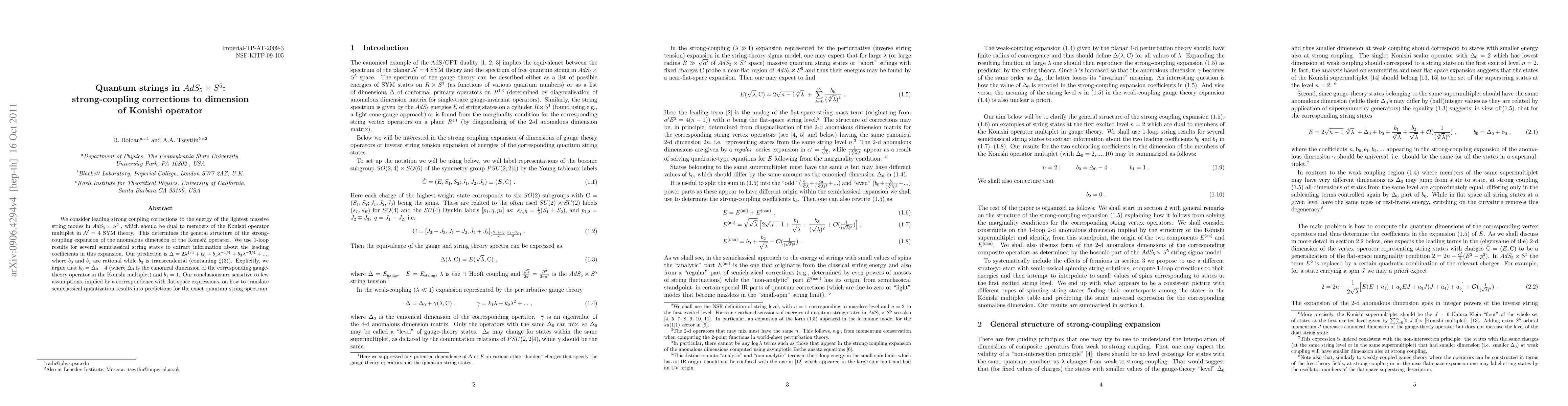 This paper investigates leading strong-coupling corrections to the energy of the lightest massive string modes in AdS_5 x S^5, which correspond to the Konishi operator in N=4 SYM theory. The authors derive a prediction for the anomalous dimension expansion, revealing rational and transcendental coefficients, and argue that their conclusions rely on minimal assumptions about translating semiclassical string results to quantum string spectra.