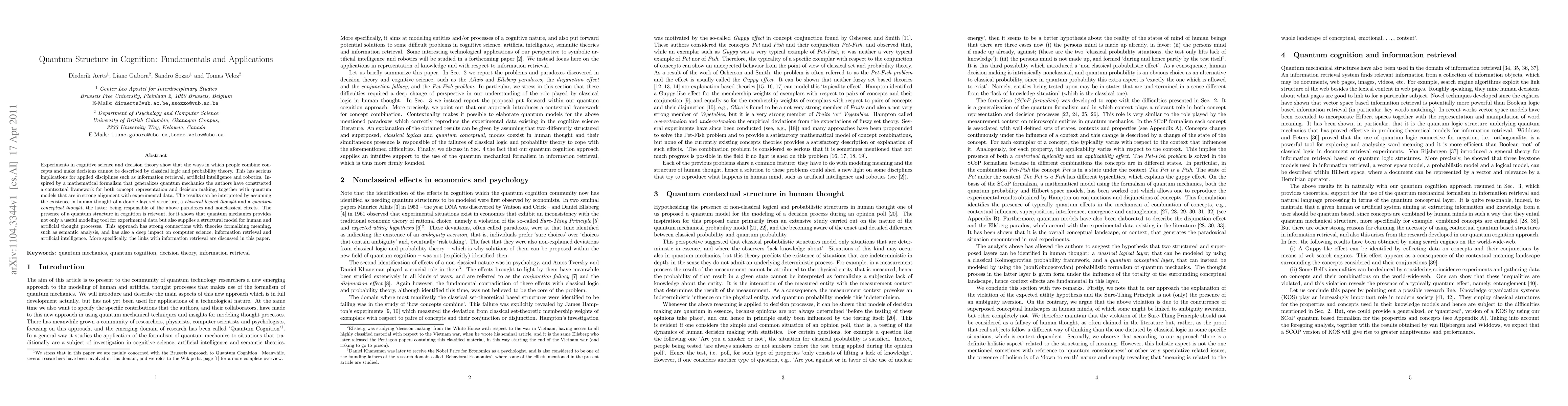 Experiments in cognitive science and decision theory show that the ways in which people combine concepts and make decisions cannot be described by classical logic and probability theory. This has serious implications for applied disciplines such as information retrieval, artificial intelligence and robotics. Inspired by a mathematical formalism that generalizes quantum mechanics the authors have constructed a contextual framework for both concept representation and decision making, together with quantum models that are in strong alignment with experimental data. The results can be interpreted by assuming the existence in human thought of a double-layered structure, a 'classical logical thought' and a 'quantum conceptual thought', the latter being responsible of the above paradoxes and nonclassical effects. The presence of a quantum structure in cognition is relevant, for it shows that quantum mechanics provides not only a useful modeling tool for experimental data but also supplies a structural model for human and artificial thought processes. This approach has strong connections with theories formalizing meaning, such as semantic analysis, and has also a deep impact on computer science, information retrieval and artificial intelligence. More specifically, the links with information retrieval are discussed in this paper.