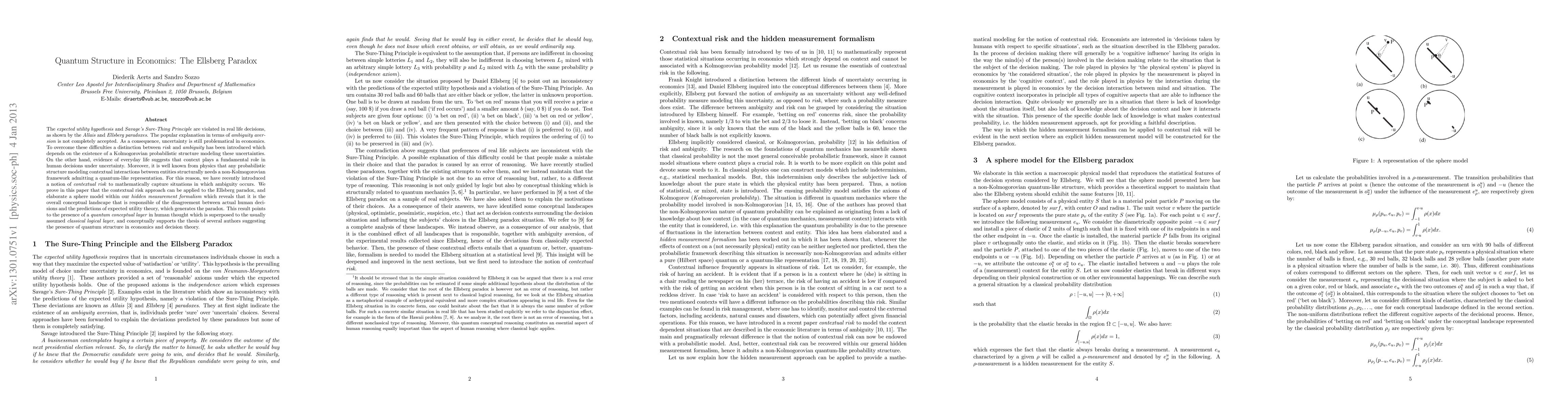 This paper explores the application of quantum structures to economics, specifically addressing the Ellsberg paradox through a contextual risk approach. It demonstrates that human decision-making under uncertainty deviates from classical expected utility theory due to a 'quantum conceptual layer' in human thought, suggesting a non-Kolmogorovian framework is needed to model contextual interactions.