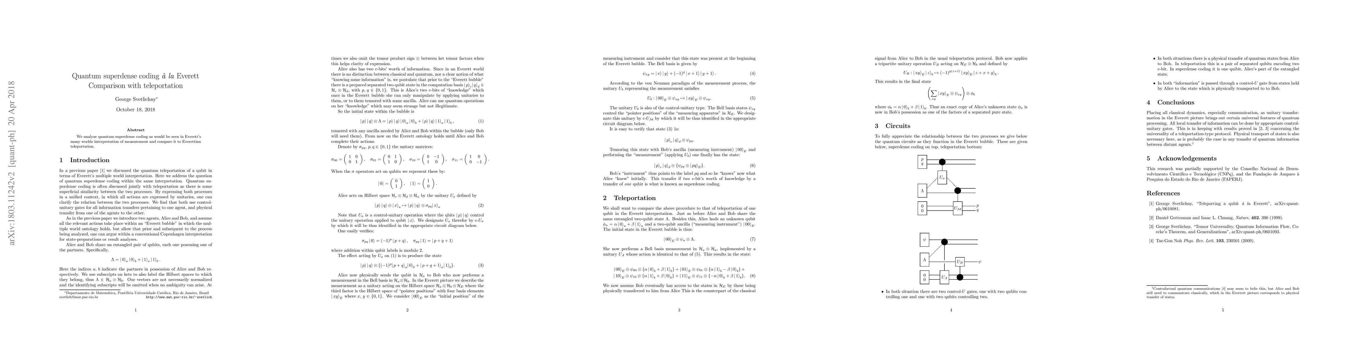 Summary: This paper examines quantum superdense coding through the lens of Everett's many-worlds interpretation, contrasting it with the principles of Everettian teleportation to highlight differences and similarities in quantum information processing.