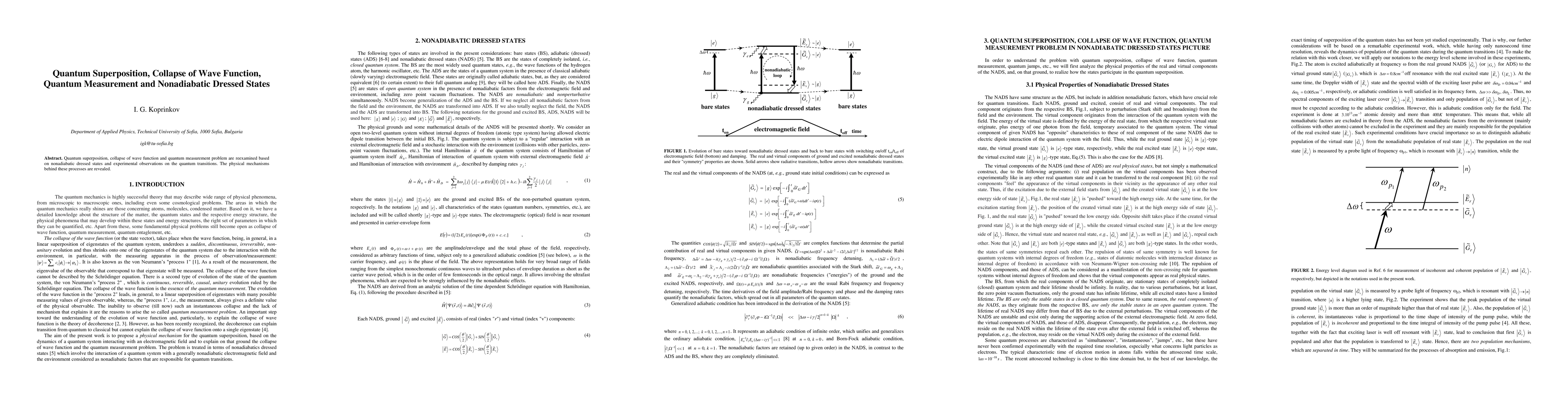 This paper reexamines quantum superposition, wave function collapse, and quantum measurement through the lens of nonadiabatic dressed states, revealing the underlying physical mechanisms and supported by experimental observations on quantum transitions.