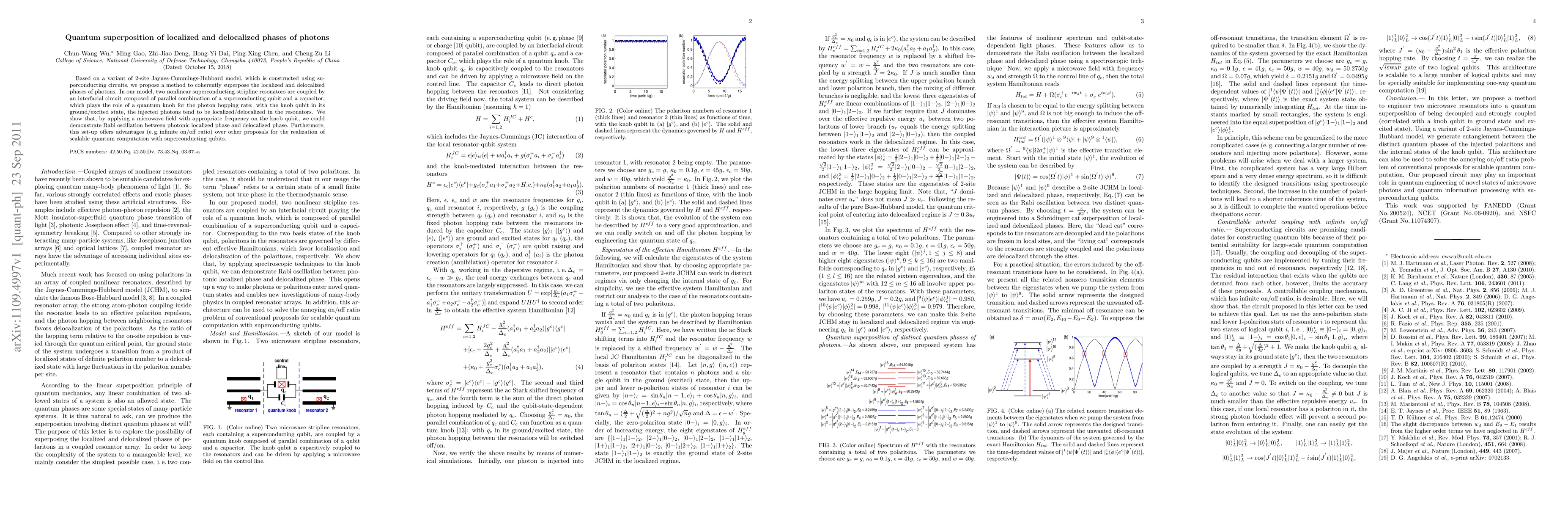 Researchers demonstrate a method to coherently superpose localized and delocalized phases of photons using a 2-site Jaynes-Cummings-Hubbard model, offering advantages for scalable quantum computation with superconducting qubits.