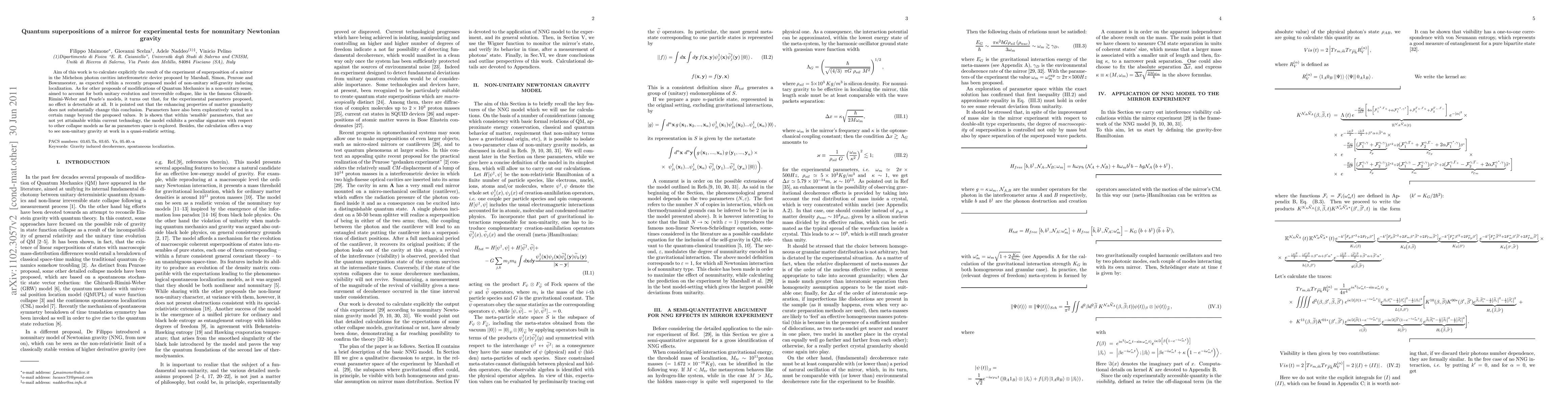Researchers explored the possibility of non-unitary Newtonian gravity using a mirror superposition in an interferometric device, finding that current technology is not sensitive enough to detect effects within proposed parameters. The study reveals potential signatures of non-unitary gravity in a quasi-realistic setting.