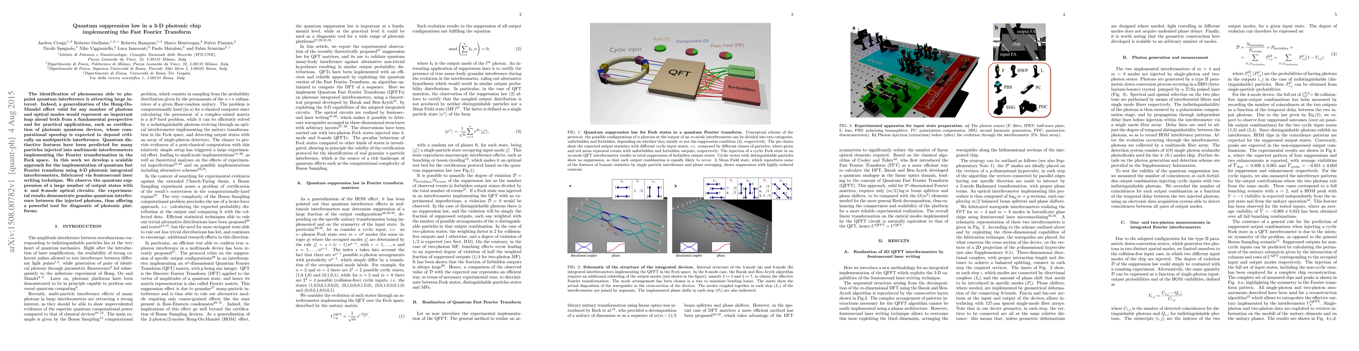 This paper develops a scalable 3-D photonic chip using the Fast Fourier Transform to observe quantum interference effects, specifically the quantum suppression law, in multimode interferometers. The results demonstrate genuine quantum interference and provide a diagnostic tool for photonic quantum devices.