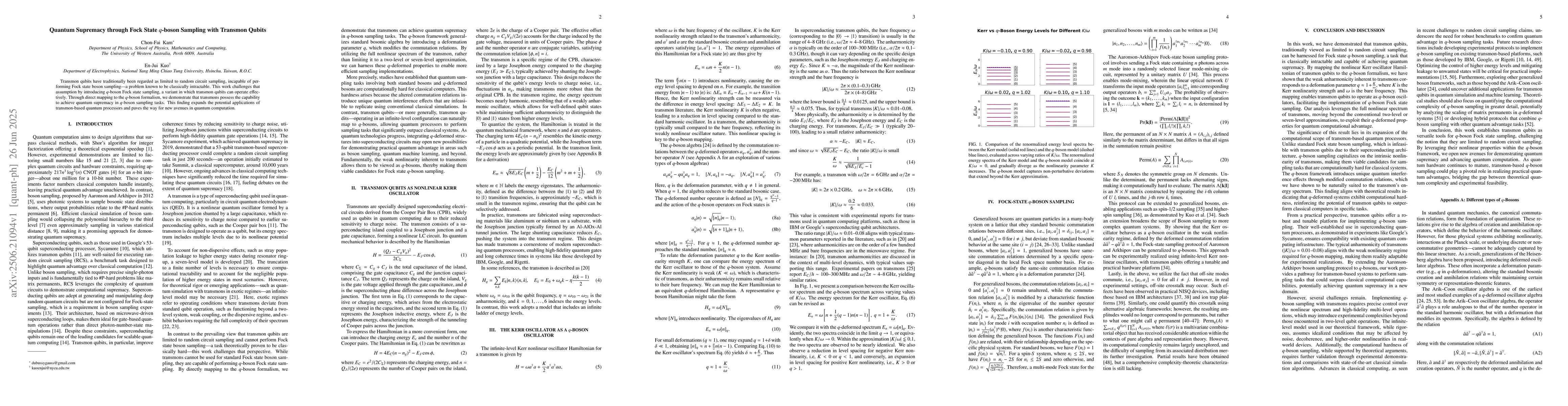 The paper provides a theoretical framework mapping the transmon Hamiltonian to the q-boson algebra, extending the boson sampling protocol to include deformed commutation relations and energy spectra, and demonstrating their practical implications.