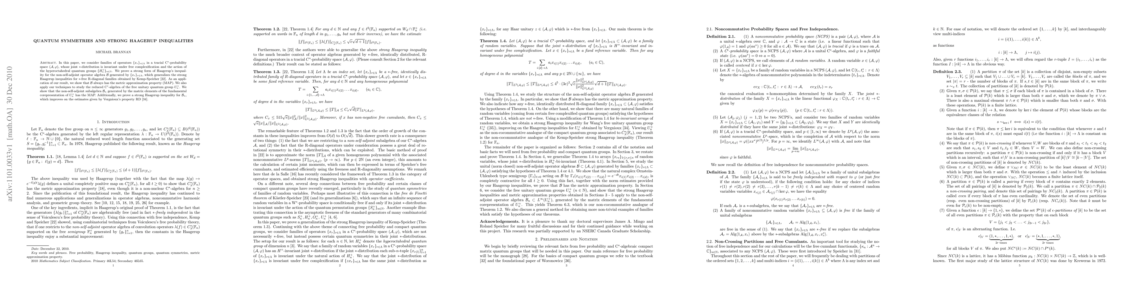 In this paper, we consider families of operators $\{x_r\}_{r \in \Lambda}$ in a tracial C$^\ast$-probability space $(\mathcal A, \phi)$, whose joint $\ast$-distribution is invariant under free complexification and the action of the hyperoctahedral quantum groups $\{H_n^+\}_{n \in \N}$. We prove a strong form of Haagerup's inequality for the non-self-adjoint operator algebra $\mathcal B$ generated by $\{x_r\}_{r \in \Lambda}$, which generalizes the strong Haagerup inequalities for $\ast$-free R-diagonal families obtained by Kemp-Speicher \cite{KeSp}. As an application of our result, we show that $\mathcal B$ always has the metric approximation property (MAP). We also apply our techniques to study the reduced C$^\ast$-algebra of the free unitary quantum group $U_n^+$. We show that the non-self-adjoint subalgebra $\mathcal B_n$ generated by the matrix elements of the fundamental corepresentation of $U_n^+$ has the MAP. Additionally, we prove a strong Haagerup inequality for $\mathcal B_n$, which improves on the estimates given by Vergnioux's property RD \cite{Ve}.