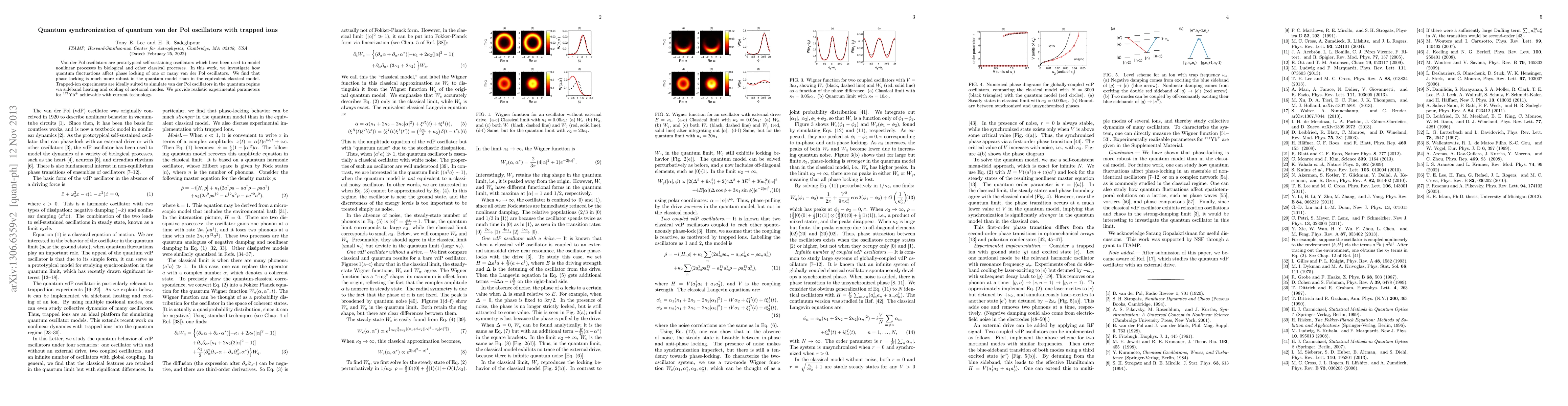 Van der Pol oscillators are prototypical self-sustaining oscillators which have been used to model nonlinear processes in biological and other classical processes. In this work, we investigate how quantum fluctuations affect phase-locking in one or many van der Pol oscillators. We find that phase-locking is much more robust in the quantum model than in the equivalent classical model. Trapped-ion experiments are ideally suited to simulate van der Pol oscillators in the quantum regime via sideband heating and cooling of motional modes. We provide realistic experimental parameters for ${}^{171}\text{Yb}^+$ achievable with current technology.