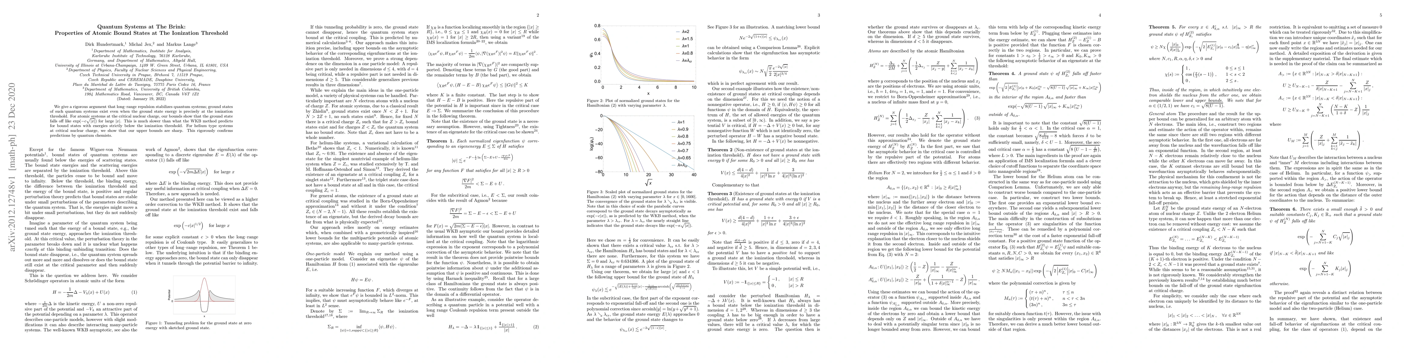 This research is significant as it confirms predictions by quantum chemists regarding the behavior of atomic bound states at the ionization threshold, providing a rigorous mathematical foundation for understanding these phenomena.