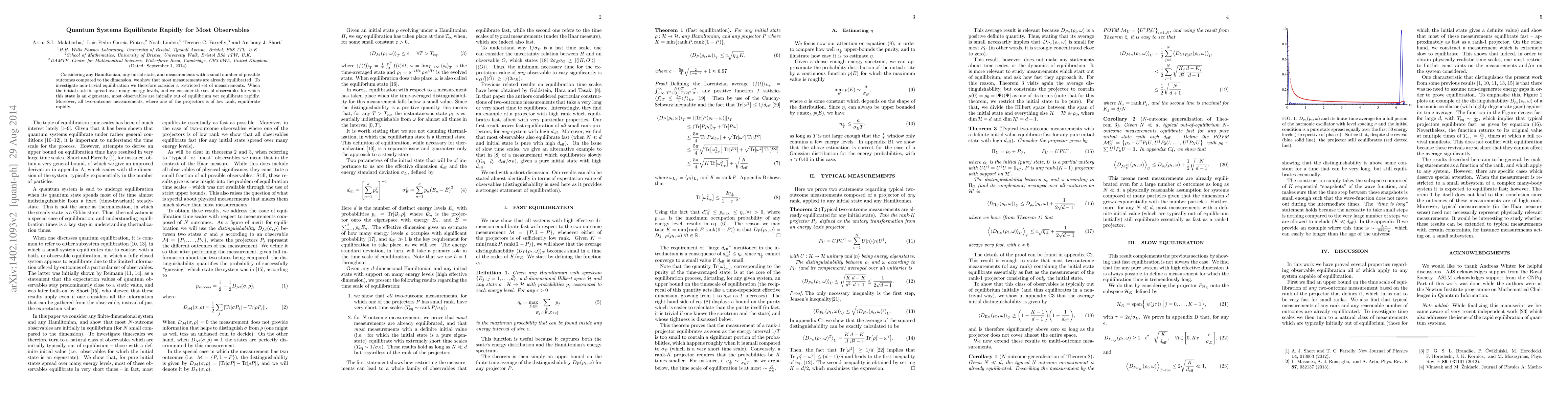 Considering any Hamiltonian, any initial state, and measurements with a small number of possible outcomes compared to the dimension, we show that most measurements are already equilibrated. To investigate non-trivial equilibration we therefore consider a restricted set of measurements. When the initial state is spread over many energy levels, and we consider the set of observables for which this state is an eigenstate, most observables are initially out of equilibrium yet equilibrate rapidly. Moreover, all two-outcome measurements, where one of the projectors is of low rank, equilibrate rapidly.