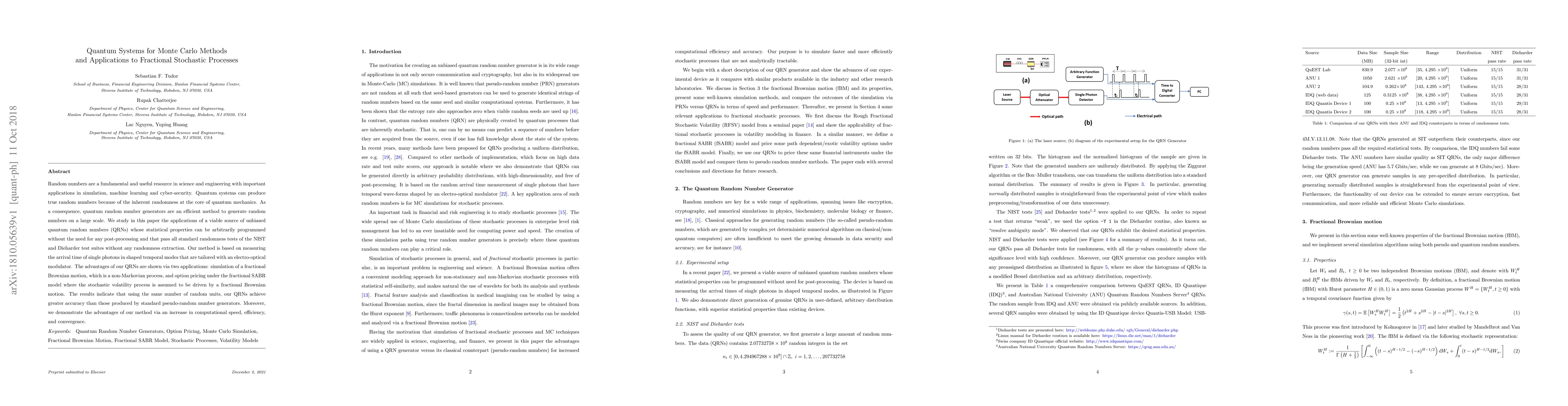 Random numbers are a fundamental and useful resource in science and engineering with important applications in simulation, machine learning and cyber-security. Quantum systems can produce true random numbers because of the inherent randomness at the core of quantum mechanics. As a consequence, quantum random number generators are an efficient method to generate random numbers on a large scale. We study in this paper the applications of a viable source of unbiased quantum random numbers (QRNs) whose statistical properties can be arbitrarily programmed without the need for any post-processing and that pass all standard randomness tests of the NIST and Dieharder test suites without any randomness extraction. Our method is based on measuring the arrival time of single photons in shaped temporal modes that are tailored with an electro-optical modulator. The advantages of our QRNs are shown via two applications: simulation of a fractional Brownian motion, which is a non-Markovian process, and option pricing under the fractional SABR model where the stochastic volatility process is assumed to be driven by a fractional Brownian motion. The results indicate that using the same number of random units, our QRNs achieve greater accuracy than those produced by standard pseudo-random number generators. Moreover, we demonstrate the advantages of our method via an increase in computational speed, efficiency, and convergence.