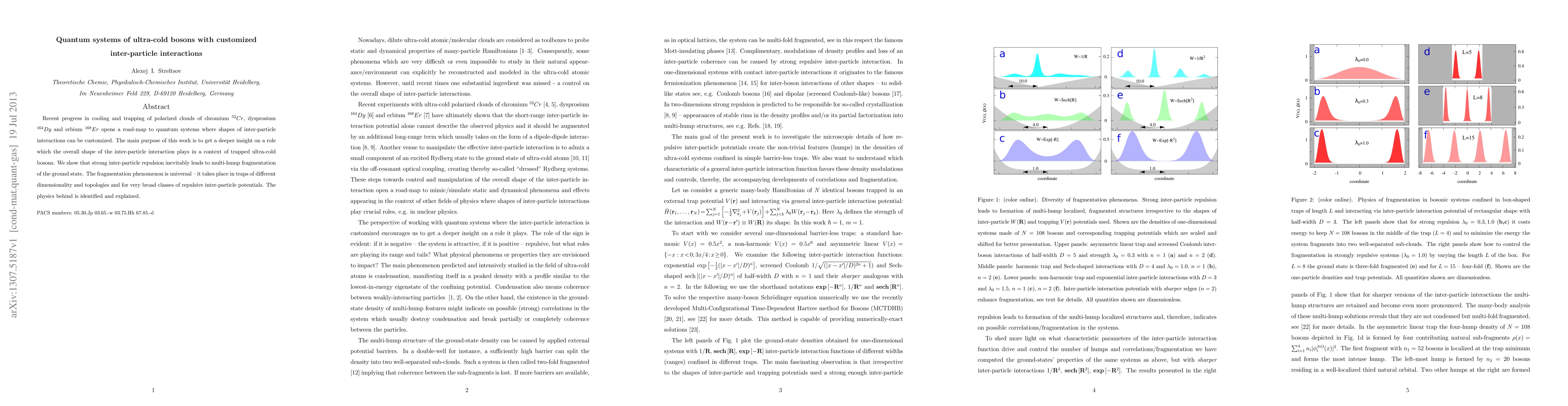Researchers investigate how ultra-cold bosons behave under customized inter-particle interactions, finding that strong repulsion leads to a universal phenomenon of multi-hump fragmentation in their ground state.
