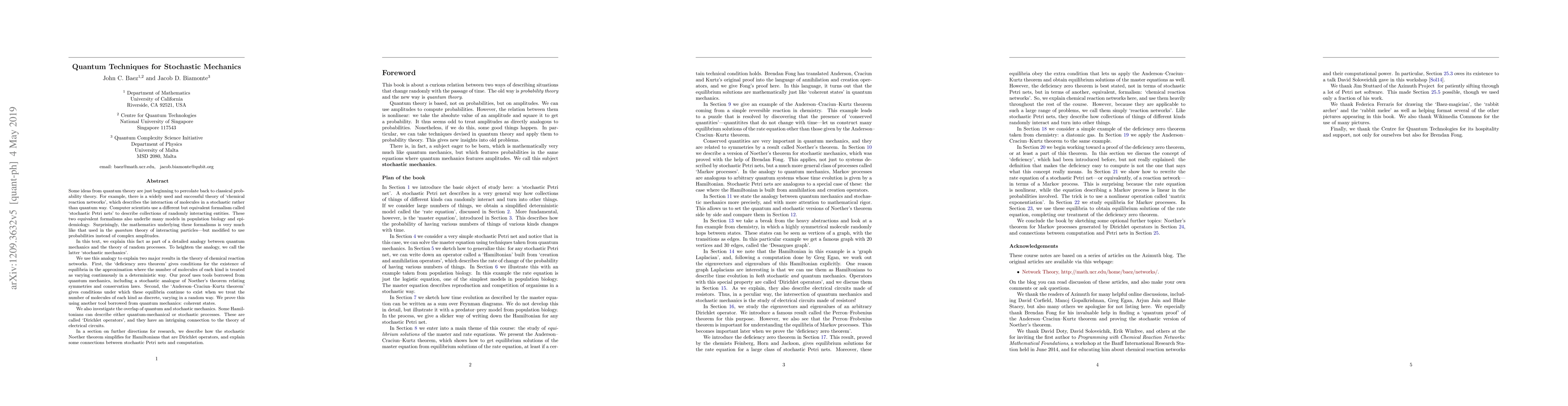 This paper explores the connection between quantum mechanics and stochastic mechanics, demonstrating how quantum concepts like creation and annihilation operators apply to classical probability theories such as chemical reaction networks and stochastic Petri nets. The authors use this analogy to provide new proofs for significant theorems in chemical reaction networks and examine Hamiltonians that generate both unitary and stochastic time evolution.