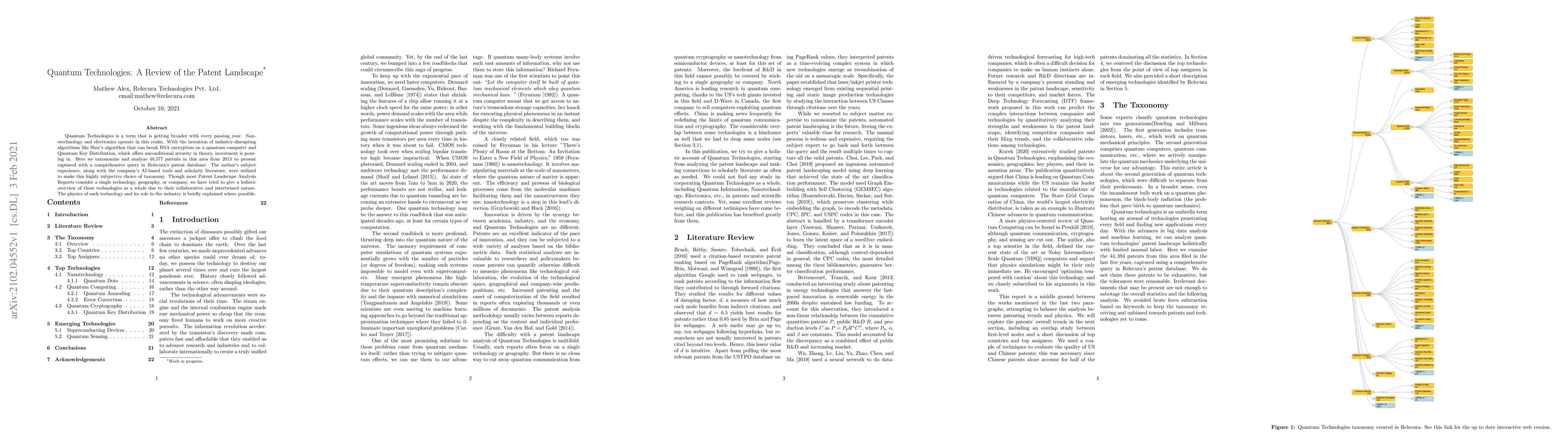 Quantum Technologies is a term that is getting broader with every passing year. Nanotechnology and electronics operate in this realm. With the invention of industry-disrupting algorithms like Shor's algorithm that can break RSA encryption on a quantum computer and Quantum Key Distribution, which offers unconditional security in theory, investment is pouring in. Here we taxonomize and analyze 48,577 patents in this area from 2015 to present captured with a comprehensive query in Relecura's patent database. The author's subject experience, along with the company's AI-based tools and scholarly literature, were utilized to make this highly subjective choice of taxonomy. Though most Patent Landscape Analysis Reports consider a single technology, geography, or company, we have tried to give a holistic overview of these technologies as a whole due to their collaborative and intertwined nature. The physics of each technology and its role in the industry is briefly explained where possible.