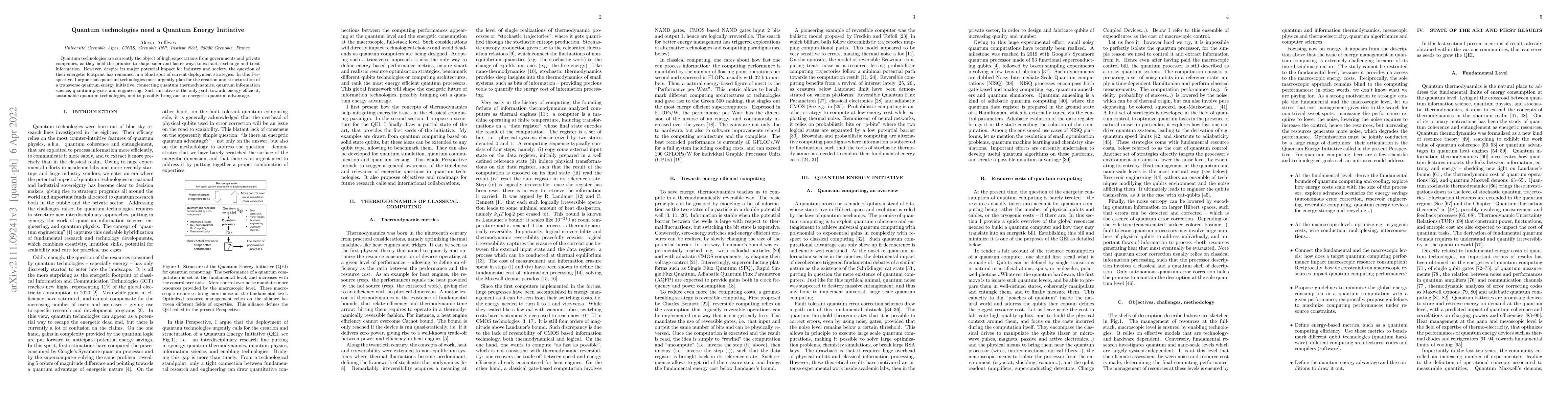 Quantum technologies are currently the object of high expectations from governments and private companies, as they hold the promise to shape safer and faster ways to extract, exchange and treat information. However, despite its major potential impact for industry and society, the question of their energetic footprint has remained in a blind spot of current deployment strategies. In this Perspective, I argue that quantum technologies must urgently plan for the creation and structuration of a transverse quantum energy initiative, connecting quantum thermodynamics, quantum information science, quantum physics and engineering. Such initiative is the only path towards energy efficient, sustainable quantum technologies, and to possibly bring out an energetic quantum advantage.