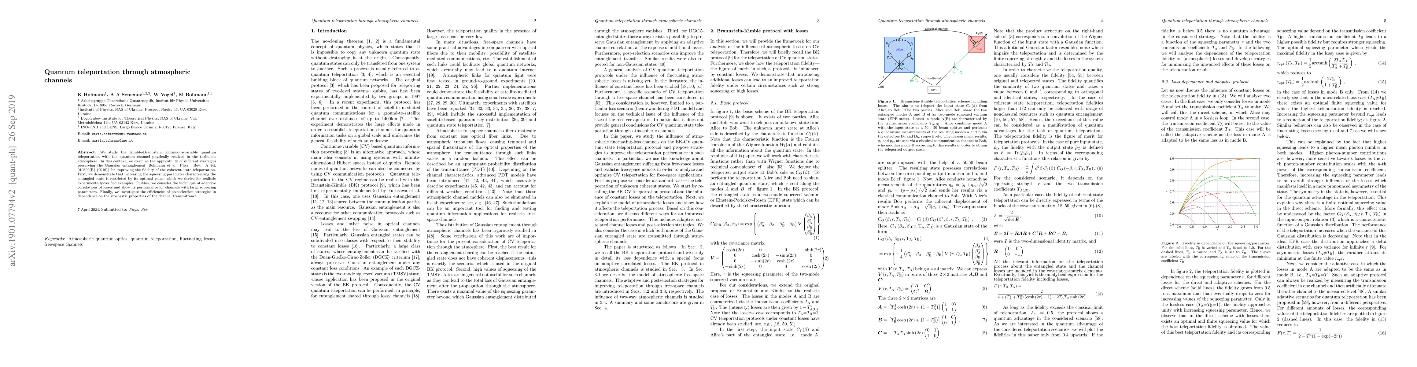This paper investigates quantum teleportation over atmospheric channels using continuous-variable quantum teleportation, focusing on strategies to maintain Gaussian entanglement and improve fidelity. The study finds optimal squeezing parameters and evaluates adaptive loss correlation and postselection techniques to enhance teleportation efficiency amidst atmospheric turbulence.