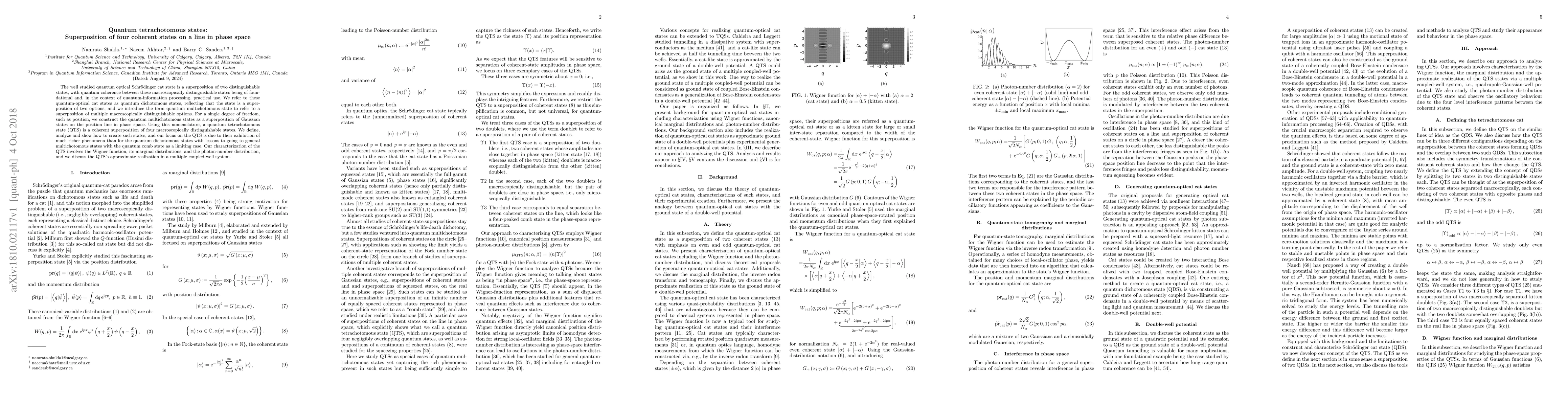 This paper introduces quantum tetrachotomous states (QTS), a superposition of four macroscopically distinguishable coherent states, and explores their construction, properties, and potential for richer quantum phenomena compared to quantum dichotomous states. The study uses the Wigner function and photon-number distribution for characterization and discusses their realization in coupled-well systems.