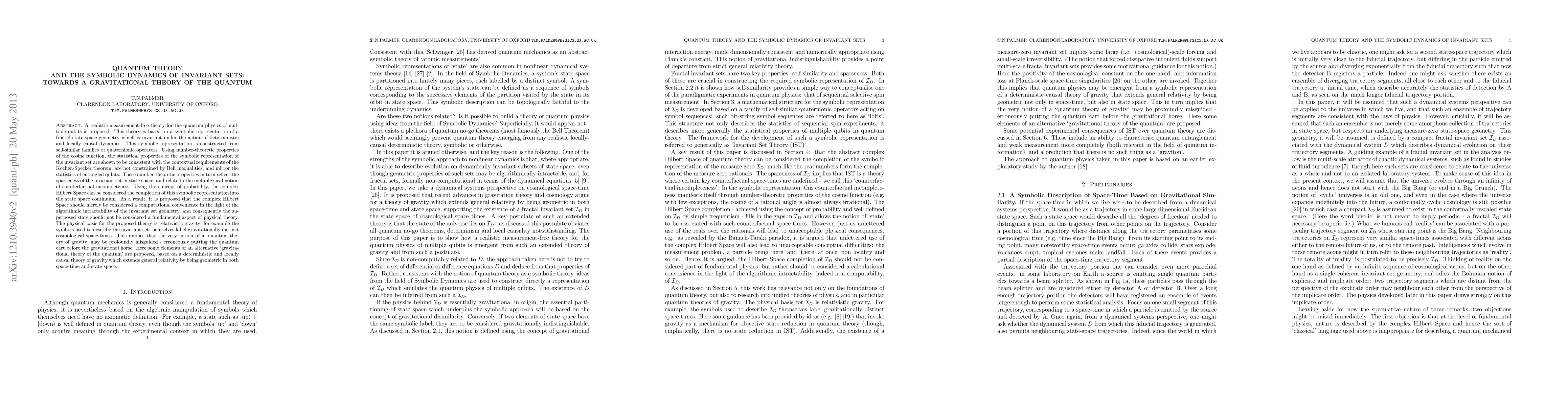 A realistic measurement-free theory for the quantum physics of multiple qubits is proposed. This theory is based on a symbolic representation of a fractal state-space geometry which is invariant under the action of deterministic and locally causal dynamics. This symbolic representation is constructed from self-similar families of quaternionic operators. Using number-theoretic properties of the cosine function, the statistical properties of the symbolic representation of the invariant set are shown to be consistent with the contextual requirements of the Kochen-Specker theorem, are not constrained by Bell inequalities, and mirror the statistics of entangled qubits. These number-theoretic properties in turn reflect the sparseness of the invariant set in state space, and relate to the metaphysical notion of counterfactual incompleteness. Using the concept of probability, the complex Hilbert Space can be considered the completion of this symbolic representation into the state space continuum. As a result, it is proposed that the complex Hilbert Space should merely be considered a computational convenience in the light of the algorithmic intractability of the invariant set geometry, and consequently the superposed state should not be considered a fundamental aspect of physical theory. The physical basis for the proposed theory is relativistic gravity; for example the symbols used to describe the invariant set themselves label gravitationally distinct cosmological space-times. This implies that the very notion of a `quantum theory of gravity' may be profoundly misguided - erroneously putting the quantum cart before the gravitational horse. Here some elements of an alternative `gravitational theory of the quantum' are proposed, based on a deterministic and locally causal theory of gravity which extends general relativity by being geometric in both space-time and state space.