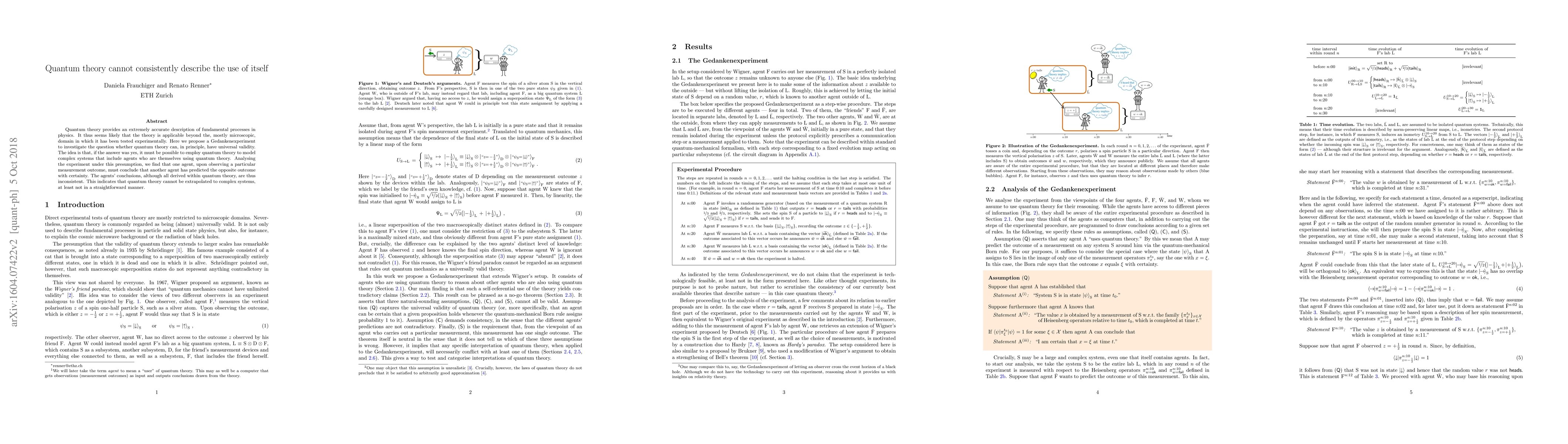 This paper proposes a Gedankenexperiment showing that quantum theory cannot consistently describe systems where agents use quantum theory themselves, as it leads to contradictory conclusions. Thus, the theory's universal applicability is questioned.