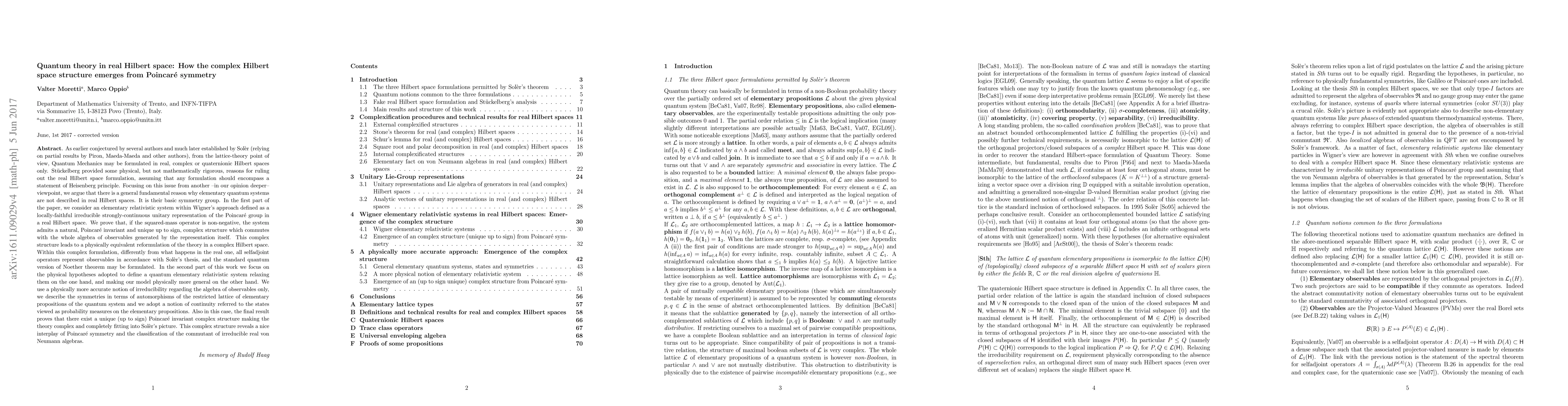 This paper demonstrates that elementary quantum systems inherently require a complex Hilbert space structure due to their Poincaré symmetry. It shows that a Poincaré invariant complex structure naturally emerges from a real Hilbert space representation, leading to a physically equivalent complex formulation that aligns with Solér's thesis and the standard quantum version of Noether's theorem.