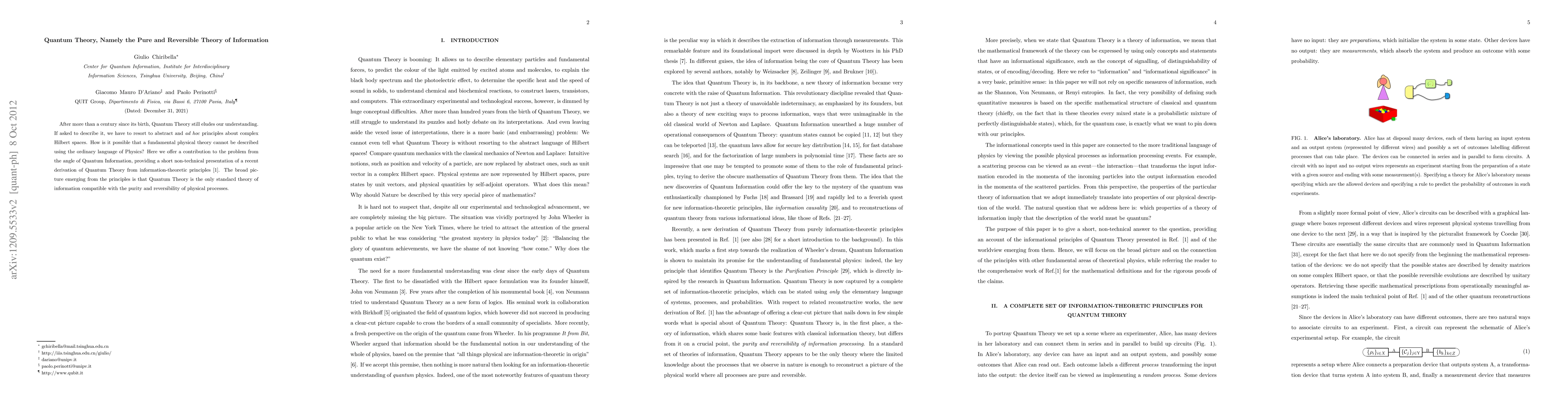 After more than a century since its birth, Quantum Theory still eludes our understanding. If asked to describe it, we have to resort to abstract and ad hoc principles about complex Hilbert spaces. How is it possible that a fundamental physical theory cannot be described using the ordinary language of Physics? Here we offer a contribution to the problem from the angle of Quantum Information, providing a short non-technical presentation of a recent derivation of Quantum Theory from information-theoretic principles. The broad picture emerging from the principles is that Quantum Theory is the only standard theory of information compatible with the purity and reversibility of physical processes.