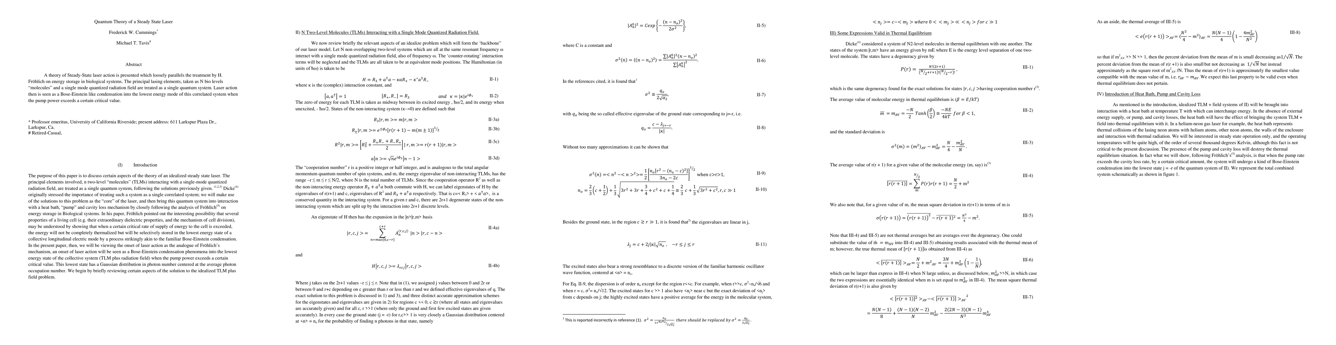 Researchers propose a quantum theory for steady-state laser action, suggesting that lasing occurs when pump power exceeds a critical value, leading to a Bose-Einstein-like condensation into the lowest energy mode of the system.
