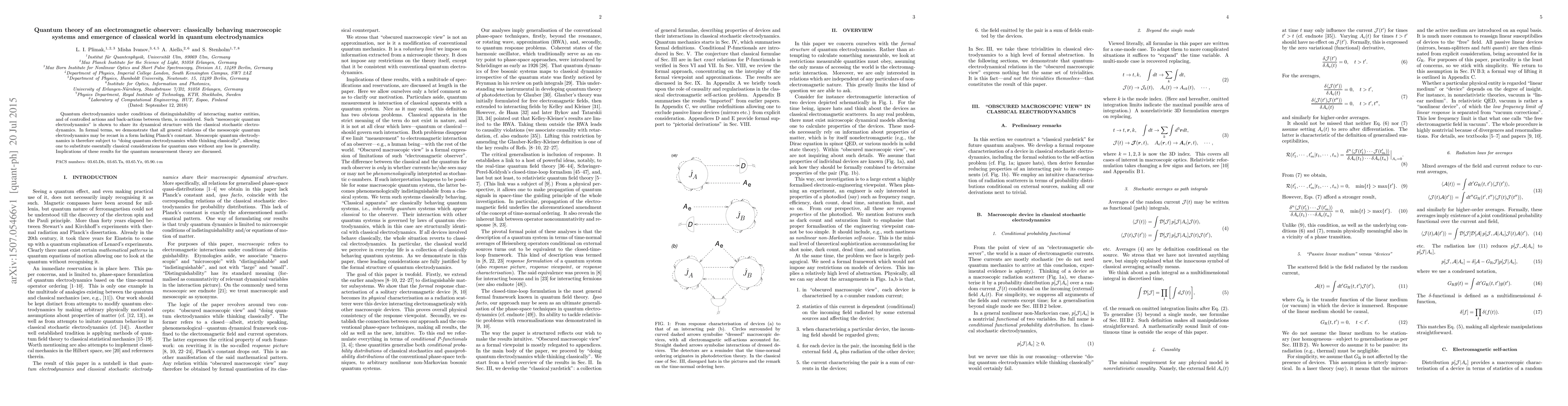 This paper explores "mesoscopic quantum electrodynamics," demonstrating that it can be recast without Planck's constant, thus allowing classical considerations to replace quantum ones without loss of generality. The findings suggest significant implications for quantum measurement theory.