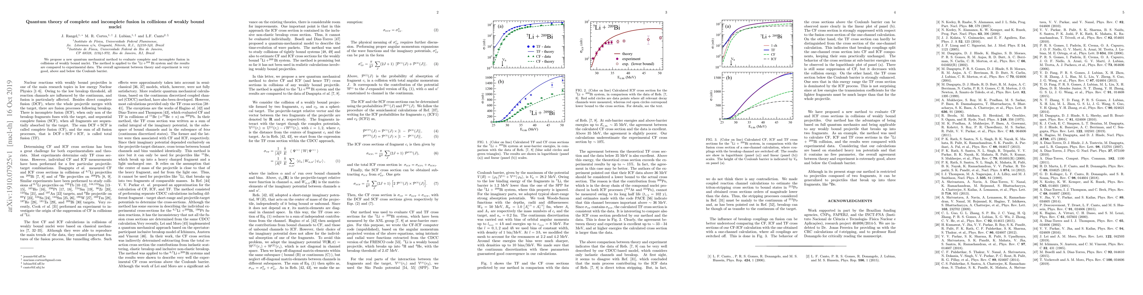 We propose a new quantum mechanical method to evaluate complete and incomplete fusion in collisions of weakly bound nuclei. The method is applied to the $^{7}{\rm Li}+^{209}{\rm Bi}$ system and the results are compared to experimental data. The overall agreement between theory and experiment is very good, above and below the Coulomb barrier.
