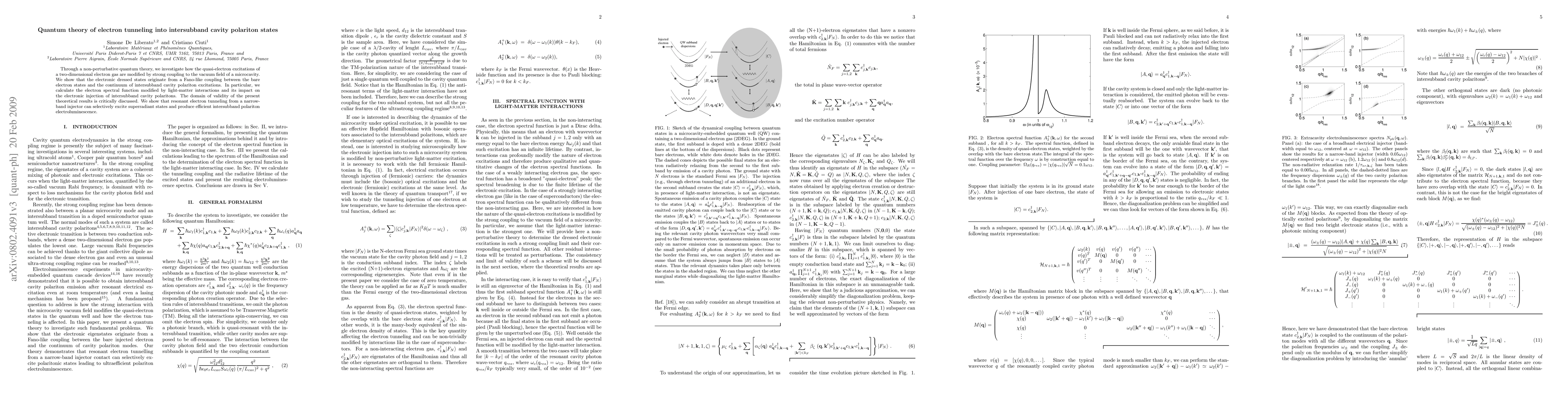 This paper develops a non-perturbative quantum theory to explore how strong coupling between a two-dimensional electron gas and a microcavity's vacuum field modifies quasi-electron excitations. The study reveals that light-matter interactions lead to Fano-like coupling, resulting in dressed electronic states and influencing the spectral function, which enhances the efficiency of intersubband polariton electroluminescence through selective resonant electron tunneling.