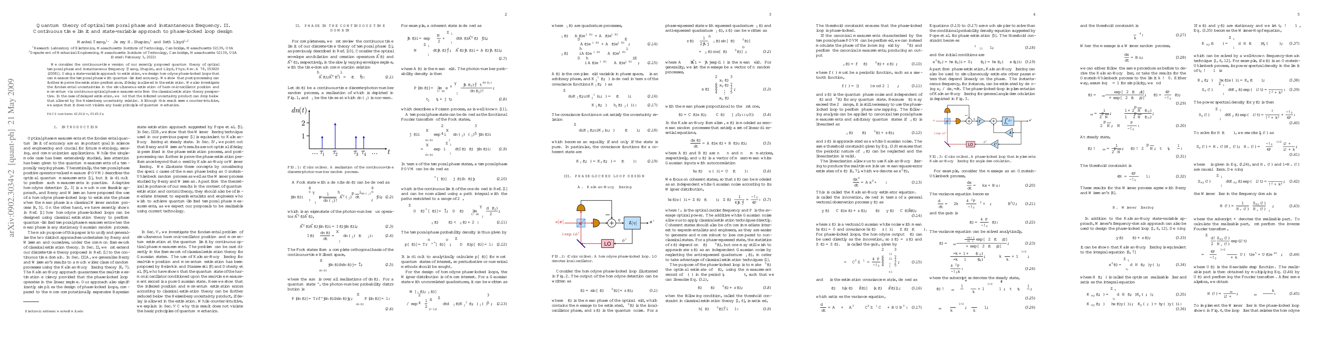 We consider the continuous-time version of our recently proposed quantum theory of optical temporal phase and instantaneous frequency [Tsang, Shapiro, and Lloyd, Phys. Rev. A 78, 053820 (2008)]. Using a state-variable approach to estimation, we design homodyne phase-locked loops that can measure the temporal phase with quantum-limited accuracy. We show that post-processing can further improve the estimation performance, if delay is allowed in the estimation. We also investigate the fundamental uncertainties in the simultaneous estimation of harmonic-oscillator position and momentum via continuous optical phase measurements from the classical estimation theory perspective. In the case of delayed estimation, we find that the inferred uncertainty product can drop below that allowed by the Heisenberg uncertainty relation. Although this result seems counter-intuitive, we argue that it does not violate any basic principle of quantum mechanics.