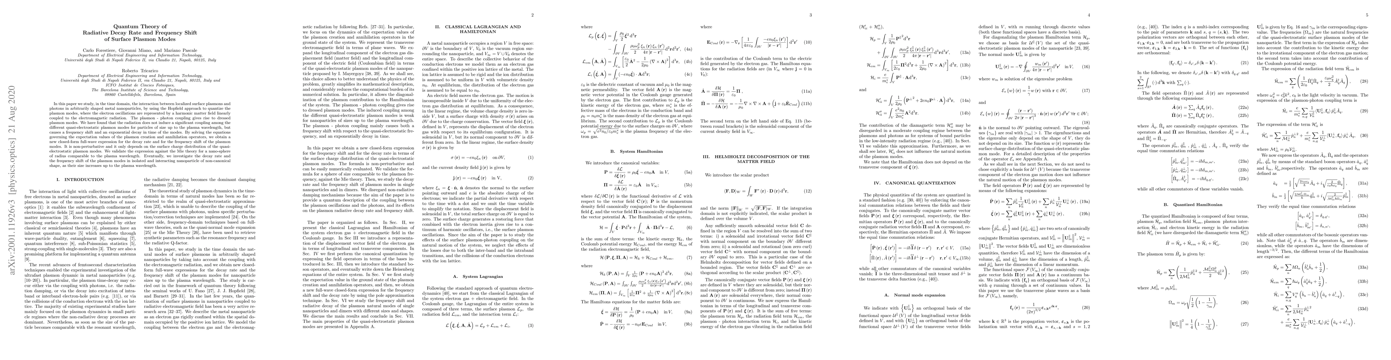 This paper quantizes the interaction between localized surface plasmons and photons in metal nanoparticles using the Hopfield approach, revealing a frequency shift and exponential decay in plasmon modes due to radiative decay. A new closed-form expression for the decay rate and frequency shift is derived, validated against Mie theory, and applied to nanoparticles of various shapes and sizes.