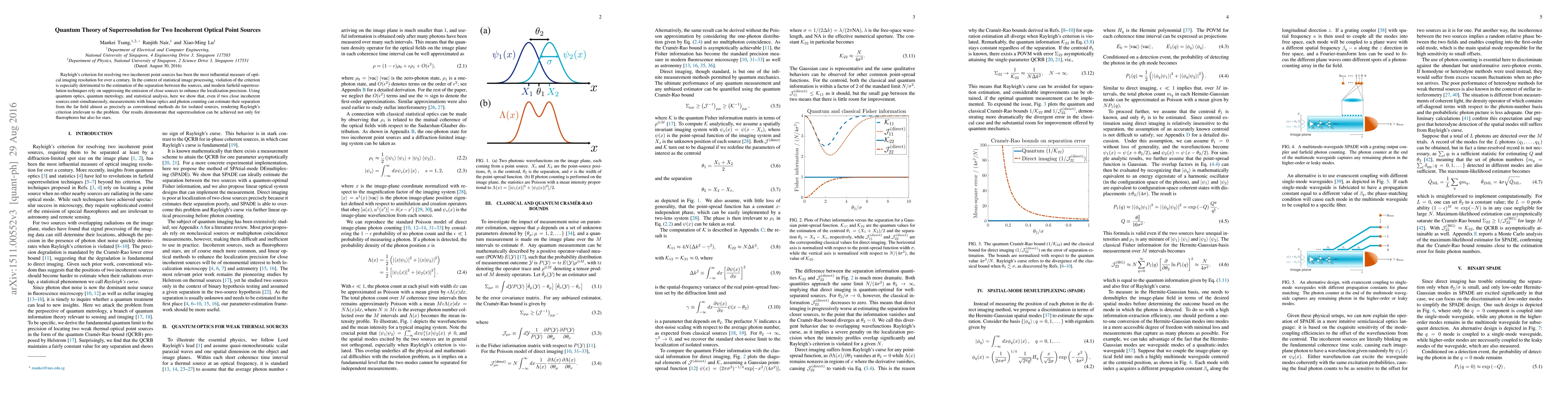 This paper demonstrates that quantum optics and statistical analysis can achieve superresolution for two incoherent optical point sources, allowing precise estimation of their separation even when they emit simultaneously. This approach renders Rayleigh's criterion obsolete, showing that superresolution is possible for both fluorophores and celestial objects.