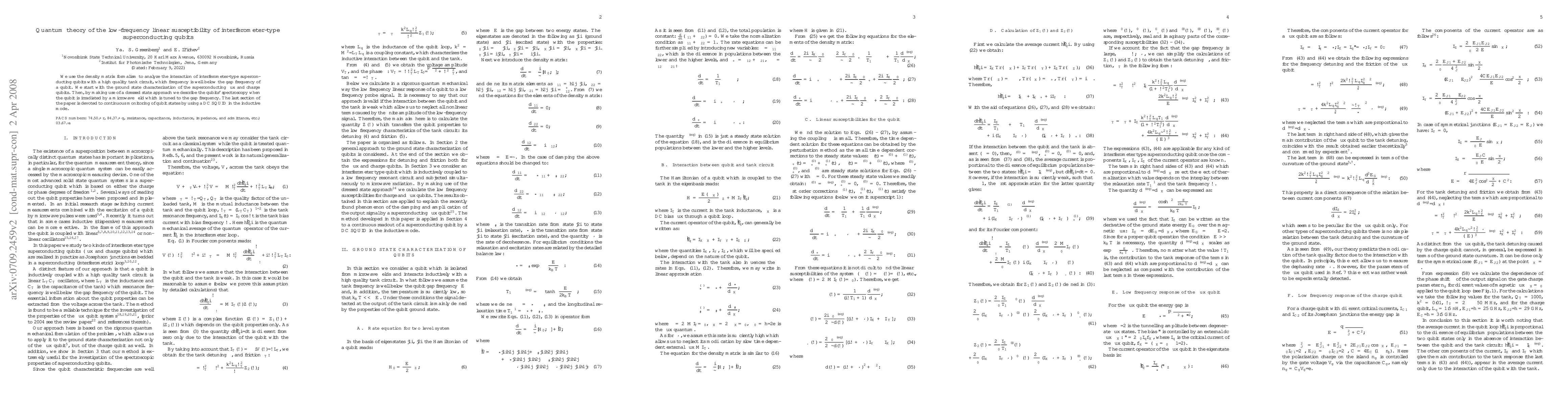 We use the density matrix formalism to analyze the interaction of interferometer-type superconducting qubits with a high quality tank circuit, which frequency is well below the gap frequency of a qubit. We start with the ground state characterization of the superconducting flux and charge qubits. Then, by making use of a dressed state approach we describe the qubits' spectroscopy when the qubit is irradiated by a microwave field which is tuned to the gap frequency. The last section of the paper is devoted to continuous monitoring of qubit states by using a DC SQUID in the inductive mode.