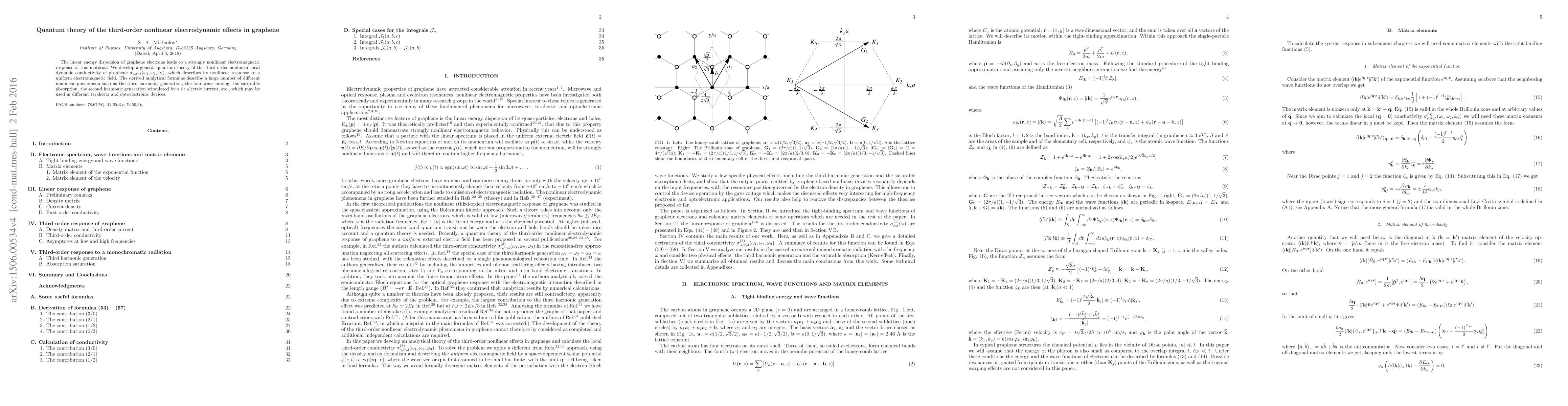 The linear energy dispersion of graphene electrons leads to a strongly nonlinear electromagnetic response of this material. We develop a general quantum theory of the third-order nonlinear local dynamic conductivity of graphene $\sigma_{\alpha\beta\gamma\delta}(\omega_1,\omega_2,\omega_3)$, which describes its nonlinear response to a uniform electromagnetic radiation. The derived analytical formulas describe a large number of different nonlinear phenomena such as the third harmonic generation, the four wave mixing, the saturable absorption, the second harmonic generation stimulated by a dc electric current, etc., which may be used in different terahertz and optoelectronic devices.