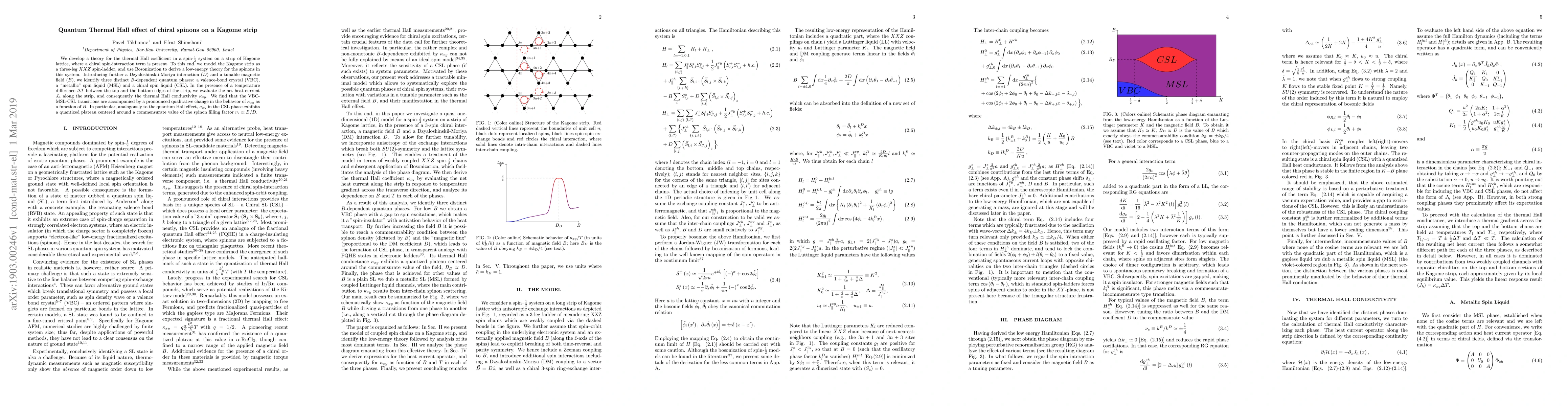 Researchers discovered three quantum phases in a Kagome strip with chiral spinons, including valence-bond crystal, metallic spin liquid, and chiral spin liquid, which exhibit quantized thermal Hall conductivity.