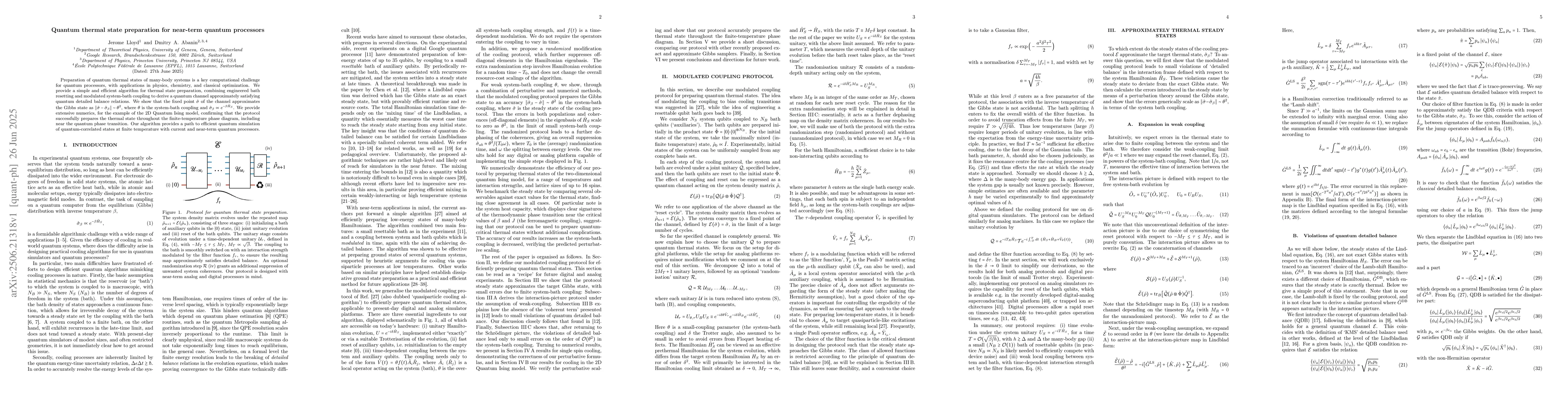 This work provides a practical and efficient method for preparing thermal states on near-term quantum processors, enabling the study of quantum many-body physics, critical phenomena, and quantum chemistry at finite temperatures.