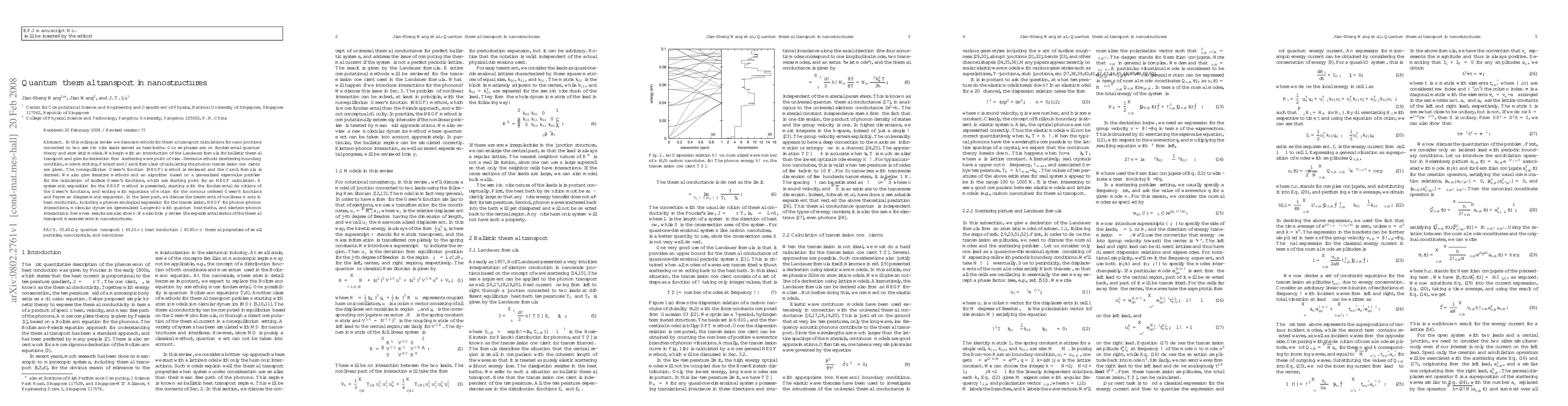 This paper reviews methods for calculating thermal transport in nanostructures using quantum theory and atomistic models, with a focus on nonequilibrium Green's function and scattering boundary conditions.