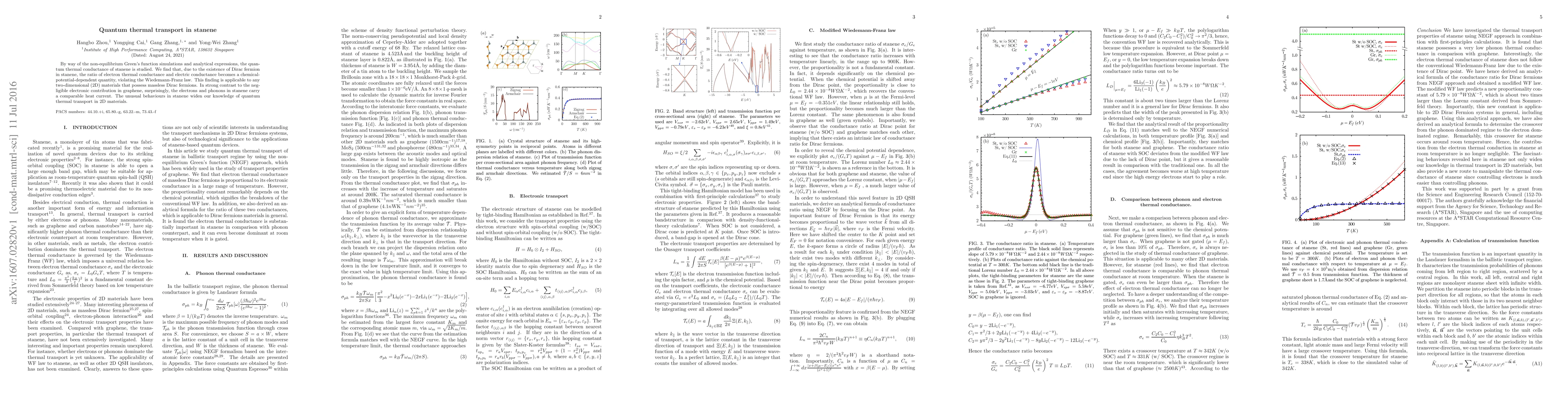 This study investigates quantum thermal transport in stanene using simulations and analytical methods, revealing that stanene's Dirac fermions cause electron thermal conductance to vary with chemical potential, breaking the Wiedemann-Franz law. Unlike graphene, stanene shows significant heat current carried by both electrons and phonons, broadening our understanding of thermal transport in 2D materials.