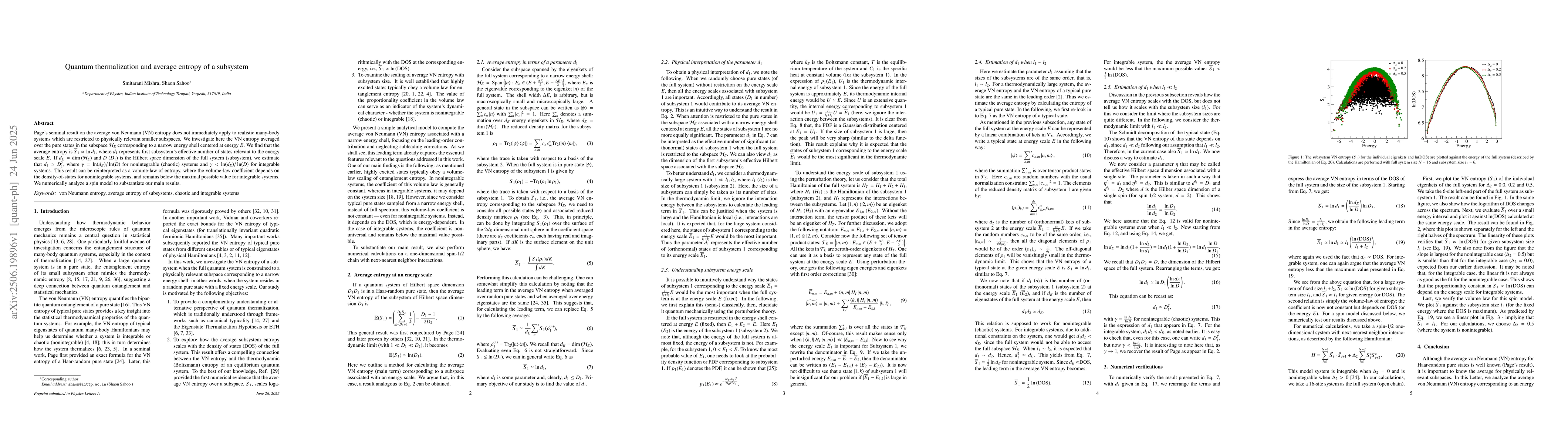 Page's seminal result on the average von Neumann (VN) entropy does not immediately apply to realistic many-body systems which are restricted to physically relevant smaller subspaces. We investigate here the VN entropy averaged over the pure states in the subspace $\mathcal{H}_E$ corresponding to a narrow energy shell centered at energy $E$. We find that the average entropy is $\overline{S}_{1} \simeq \ln d_1$, where $d_1$ represents first subsystem's effective number of states relevant to the energy scale $E$. If $d_E = \dim{(\mathcal{H}_E)}$ and $D$ ($D_1$) is the Hilbert space dimension of the full system (subsystem), we estimate that $d_1 \simeq D_1^\gamma$, where $\gamma = \ln (d_E) / \ln (D)$ for nonintegrable (chaotic) systems and $\gamma < \ln (d_E) / \ln (D)$ for integrable systems. This result can be reinterpreted as a volume-law of entropy, where the volume-law coefficient depends on the density-of-states for nonintegrable systems, and remains below the maximal possible value for integrable systems. We numerically analyze a spin model to substantiate our main results.